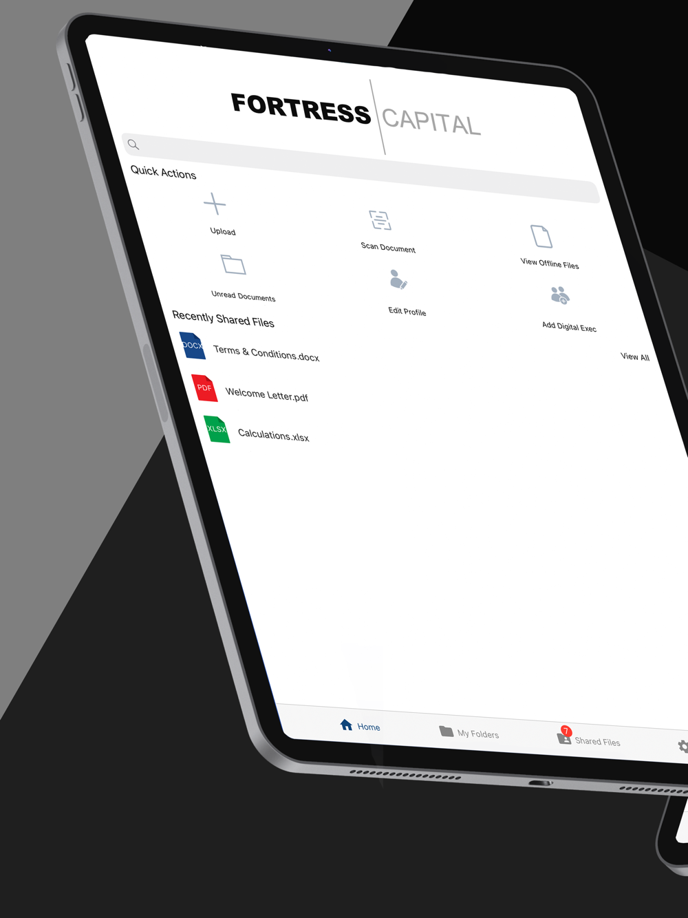 This provides investor Partners with a digital filing cabinet for all their valuable documents with the option to send and share financial data and private folders with both your professional or personal contacts and of course, Fortress Capital, including your monthly FCP Statement of Account.