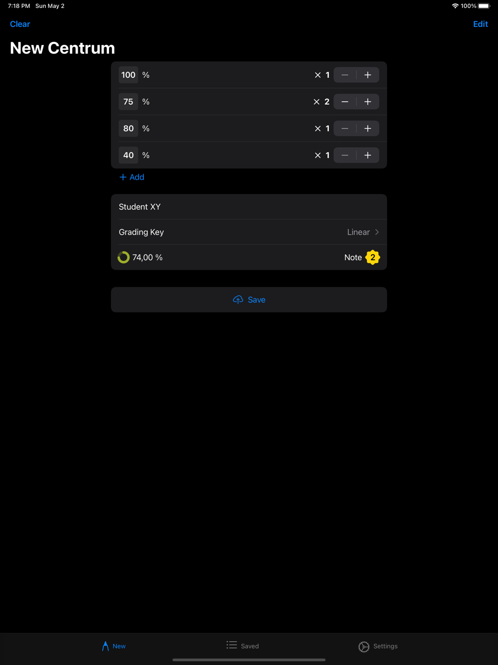 Oral exams can be difficult to grade: students may ask why they got a specific result with a detailed explanation. Centrum to the rescue! It's easy for a teacher to state at what percentage a specific question was answered.