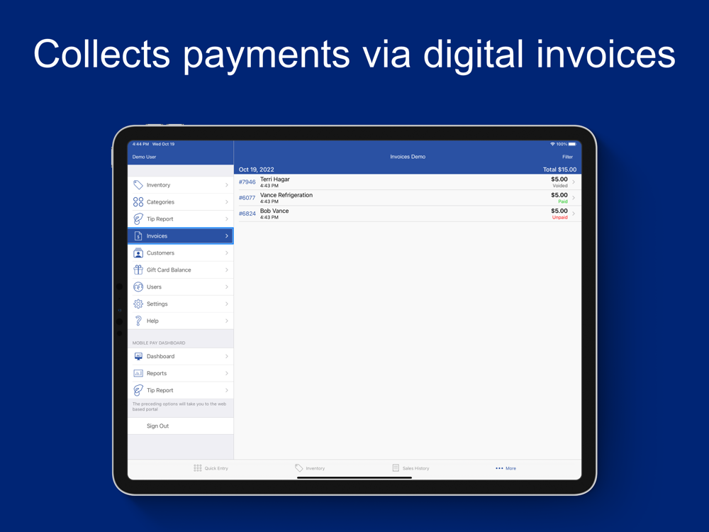 The APEXNow app turns your iOS device into a mobile point of sale, allowing you to process card-based payments, as well as record cash-based sales. Set sales tax rates and tipping right in the app, and leverage bar codes and images to create specific inventory groups to expedite sales.