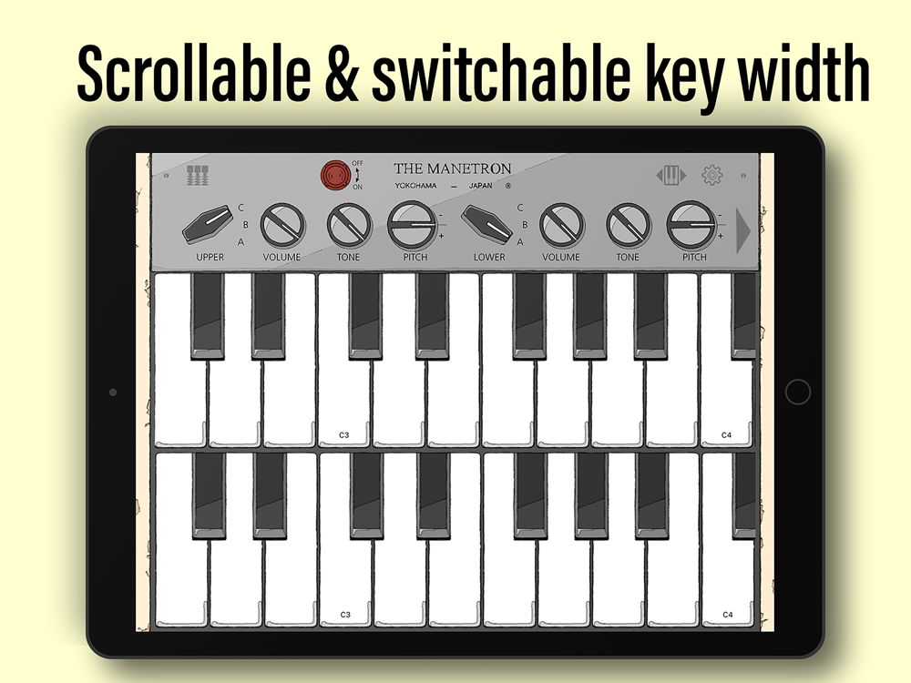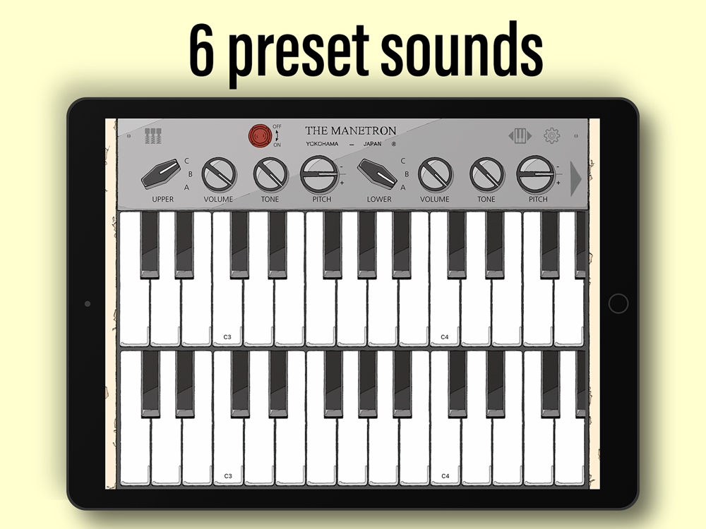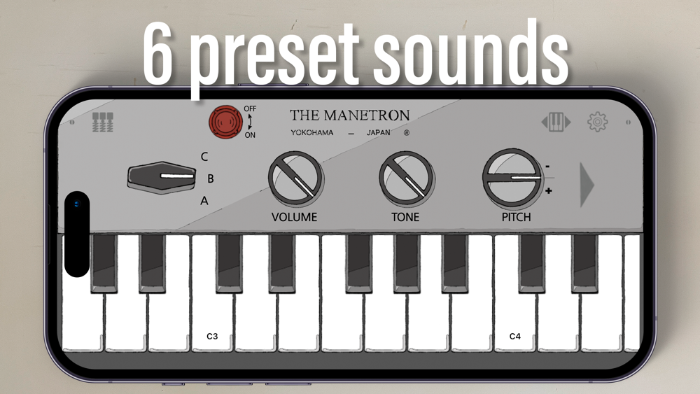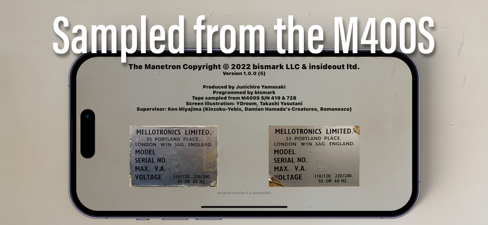 "The Manetron" is the vintage tape sampling keyboard App for iPhone/iPad/Apple Silicon Mac. Genuine sound sampled from the most famous white body tape sampling keyboard model number of M400S (serial number 419 & 728) manufactured in the 70's. You can see an internal mechanism (tape running animation) and can enjoy with eyes and an ear. Feel the live experience the motor noise mechanical sounds were recorded.