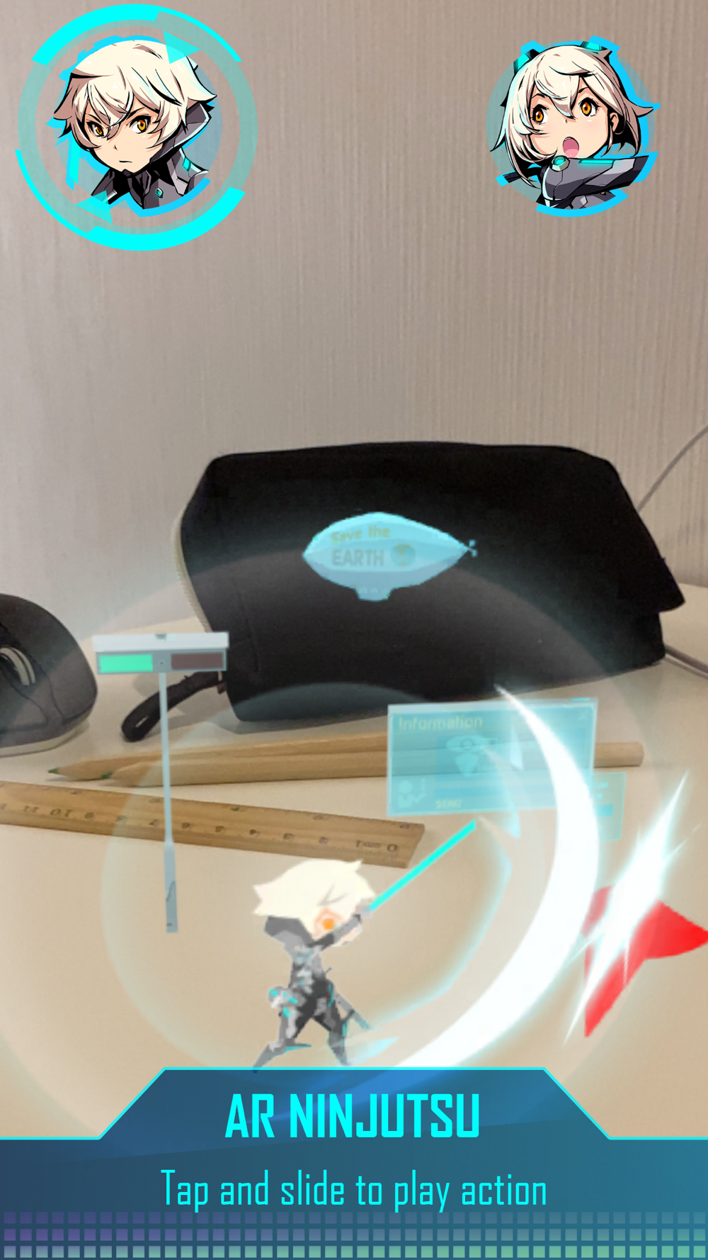 Ninja Gear AR action experience app. A promotional companion app for the game Ninja Gear is available now on iOS App Store. AR Marker can be downloaded from the developer website URL below. Just scan the Ninja Gear logo to activate AR function.