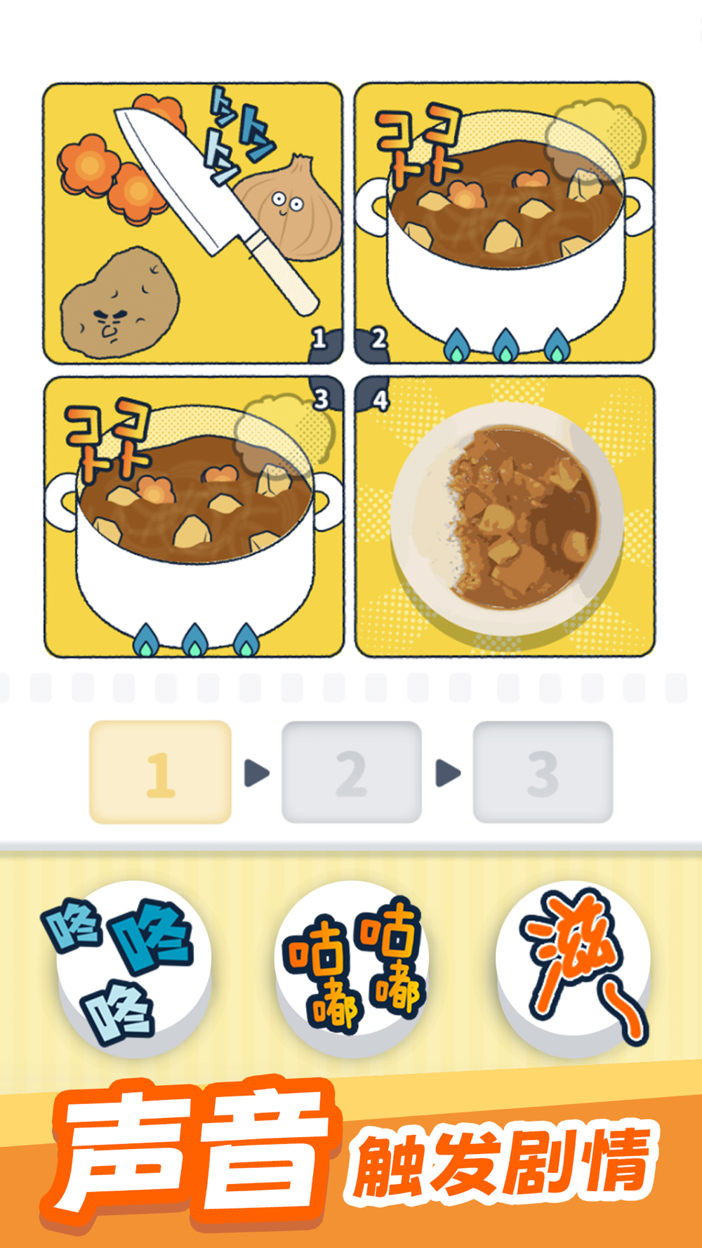 1)選擇聲音對應相應的行動,完成關卡解謎