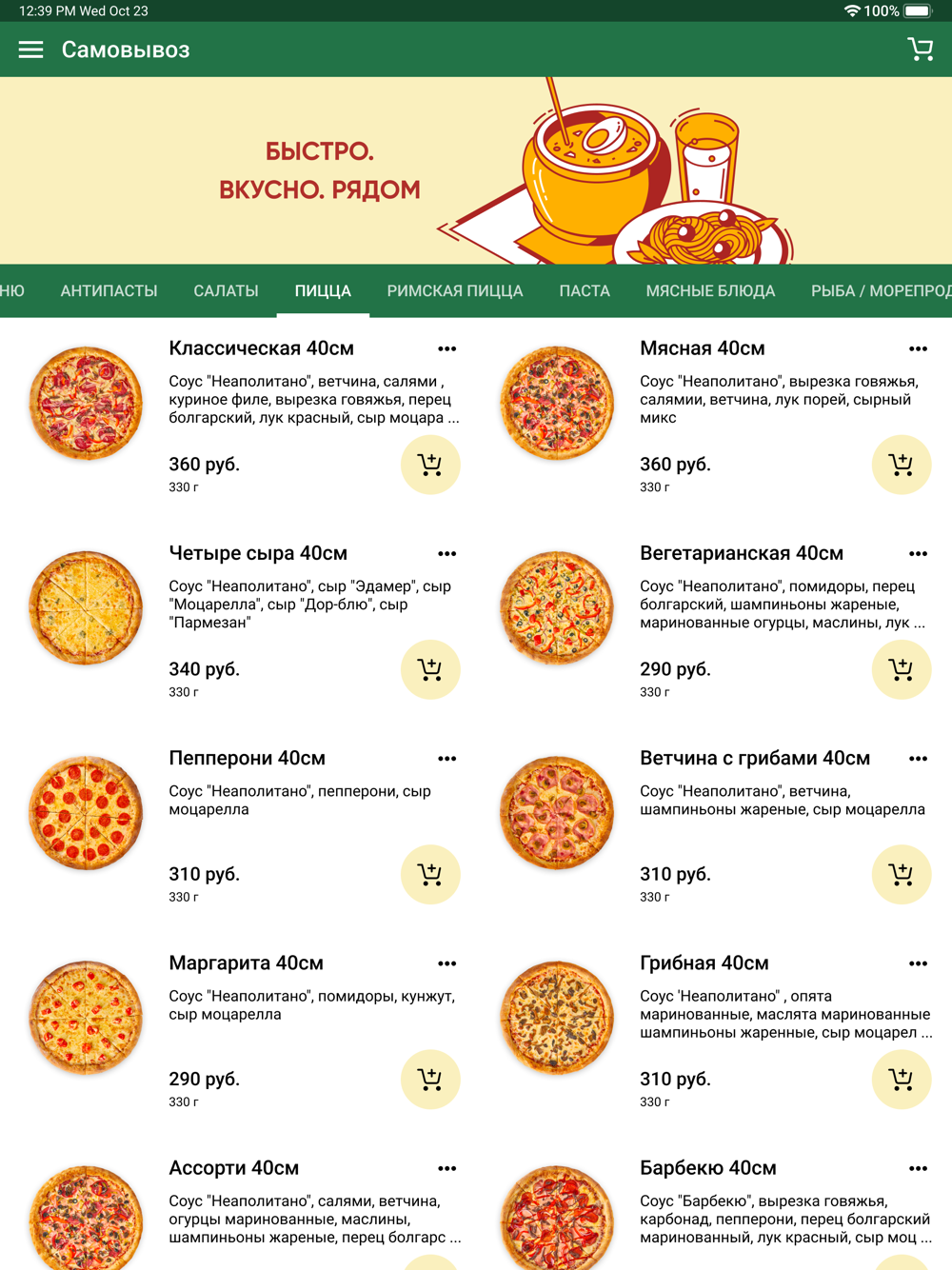 Мы готовим пиццу, пасту, ризотто, мясо и рыбу, десерты и другие традиционные блюда средиземноморской кухни.