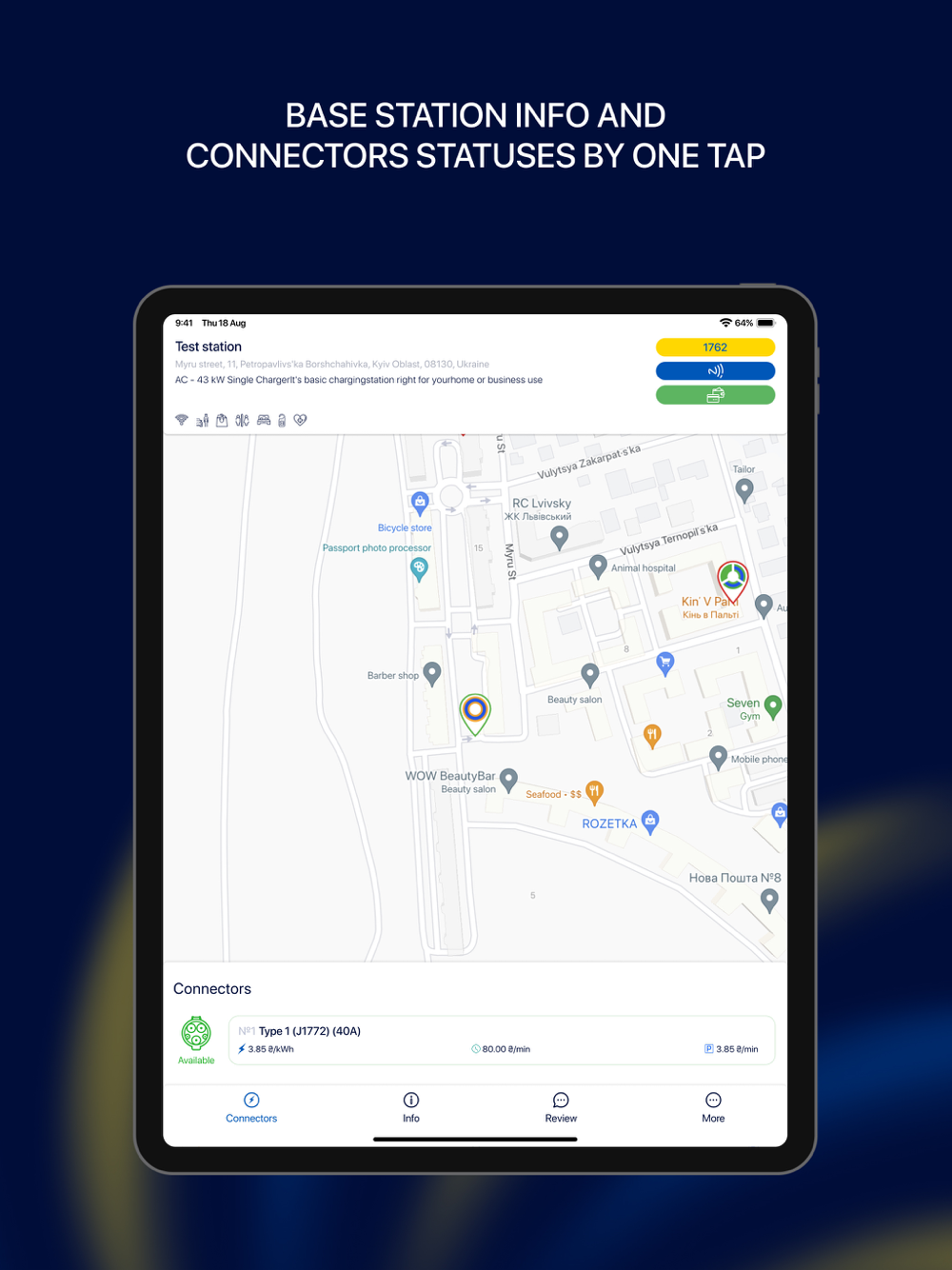 Start charging in two taps. Control the process and get up-to-date information. Keep track of your expenses.