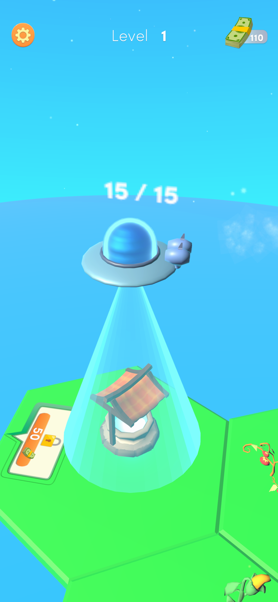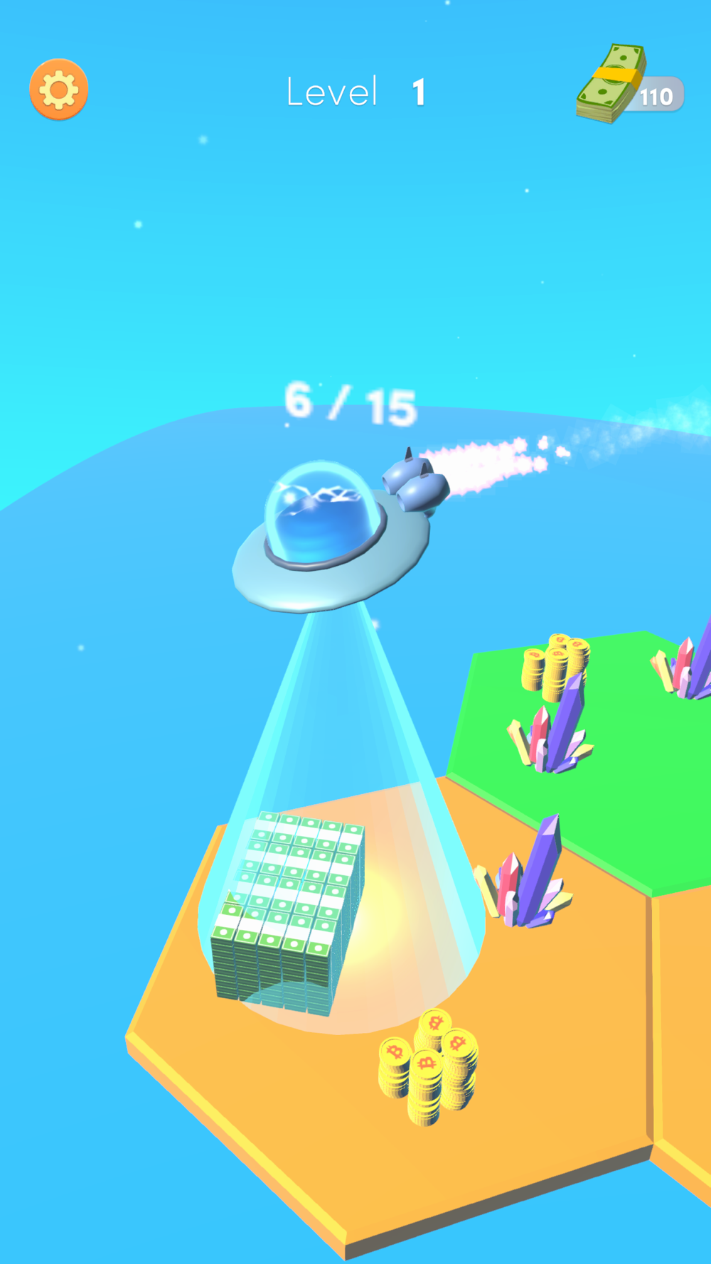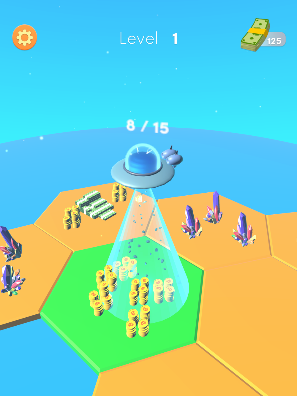 Collect everything on earth using the UFO, convert them into money. Upgrade and open more grids.