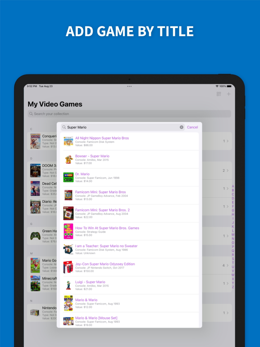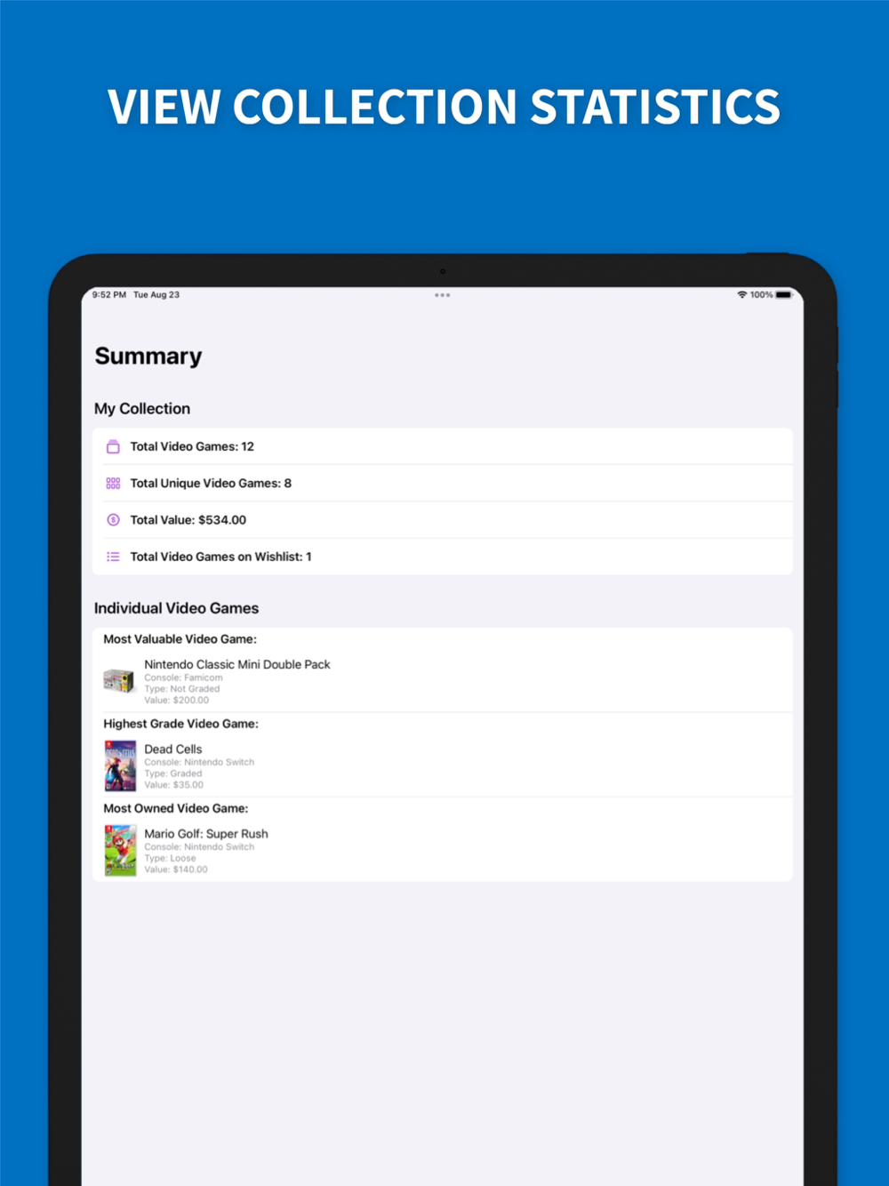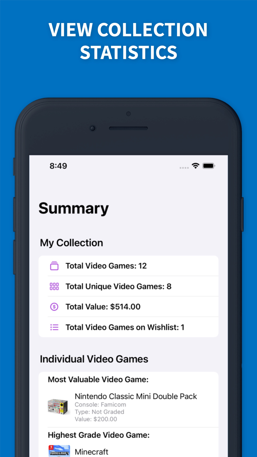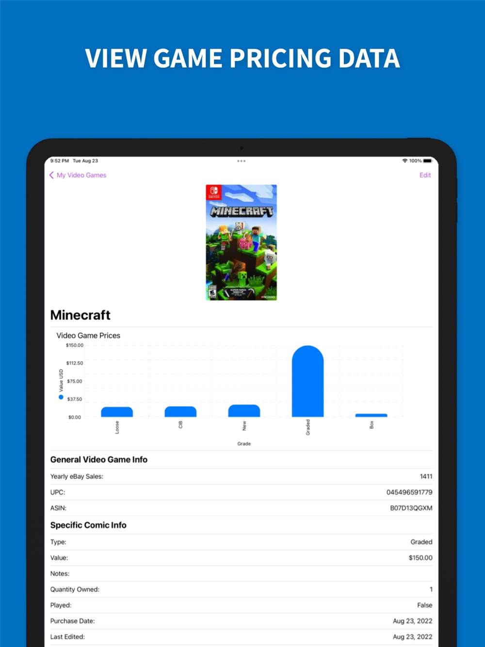Track your video game collection and current pricing with LuckyGame, the video game companion app!