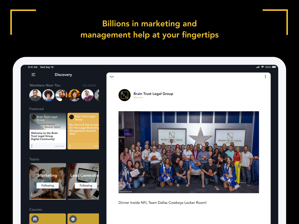 Make your legal marketing more effective. Improve your intake process. Find the flaws in your firm’s management structure. Brain Trust Legal Group Digital Community provides billions of dollars worth of marketing and management knowledge from the greatest legal minds operating today.