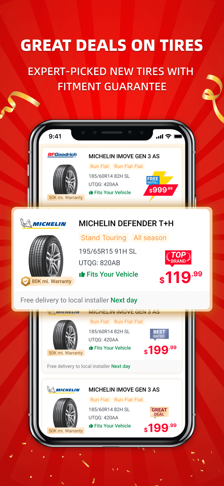 -Add vehicles so you can quickly find the right tires fitting for your vehicles.