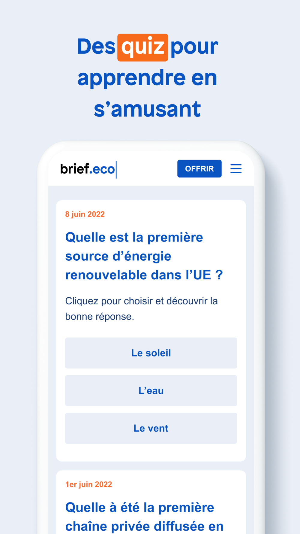 - Une édition par semaine : chaque mercredi à 12h30, Brief.eco vous explique l’économie, sans parti pris ni publicité.
