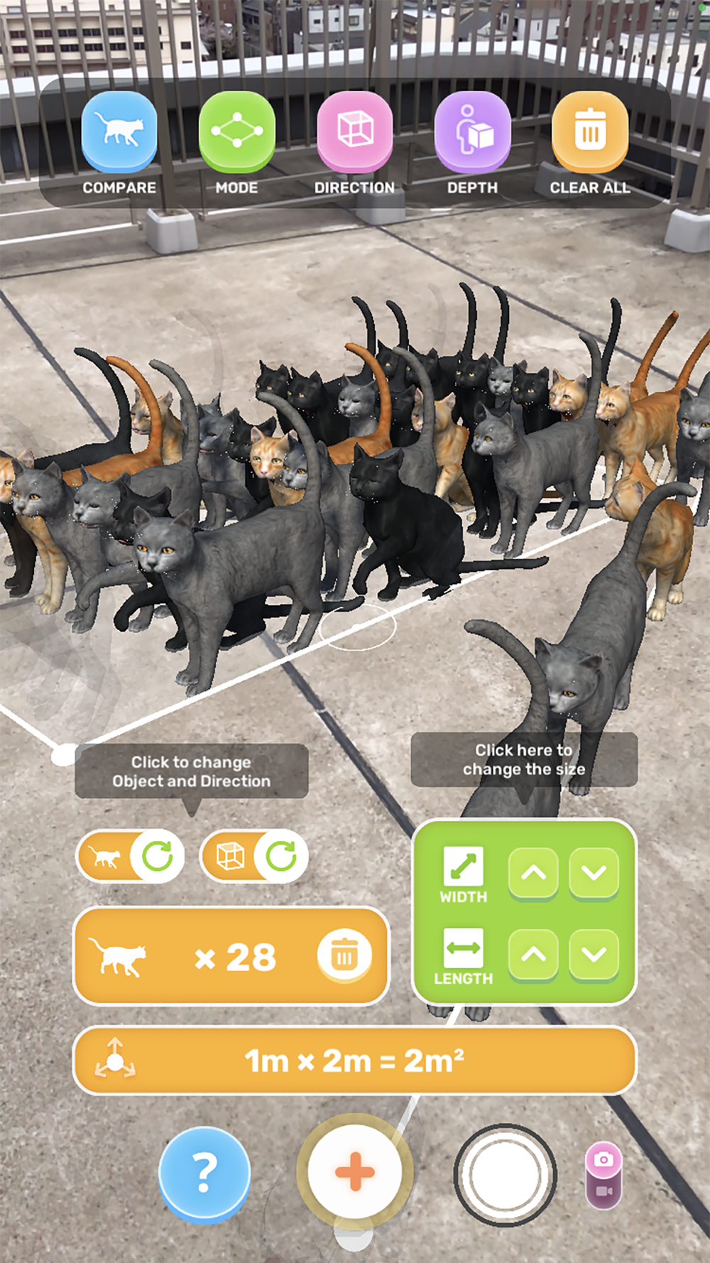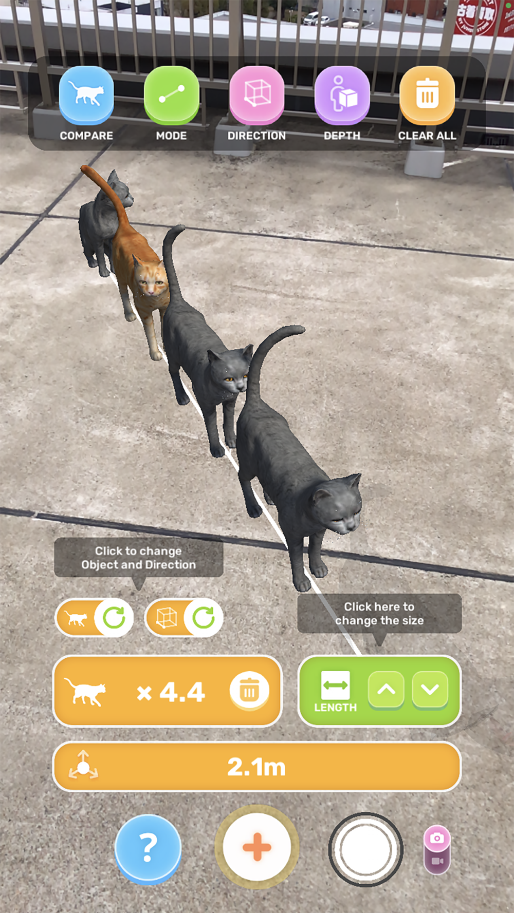 めじゃにまるは動物や人を使って長さや面積、体積を視覚的に計測するためのエンターテイメントツールです。