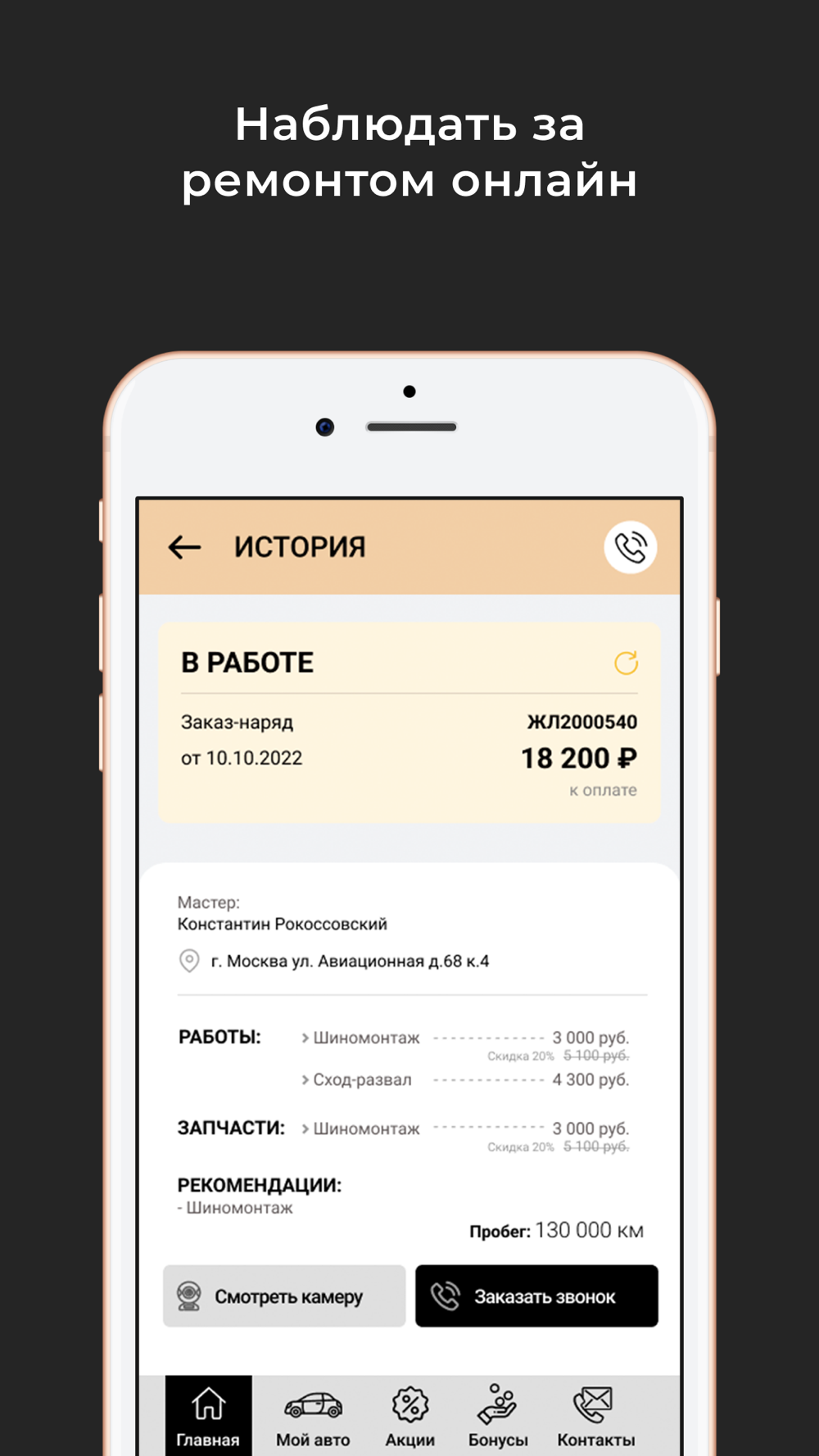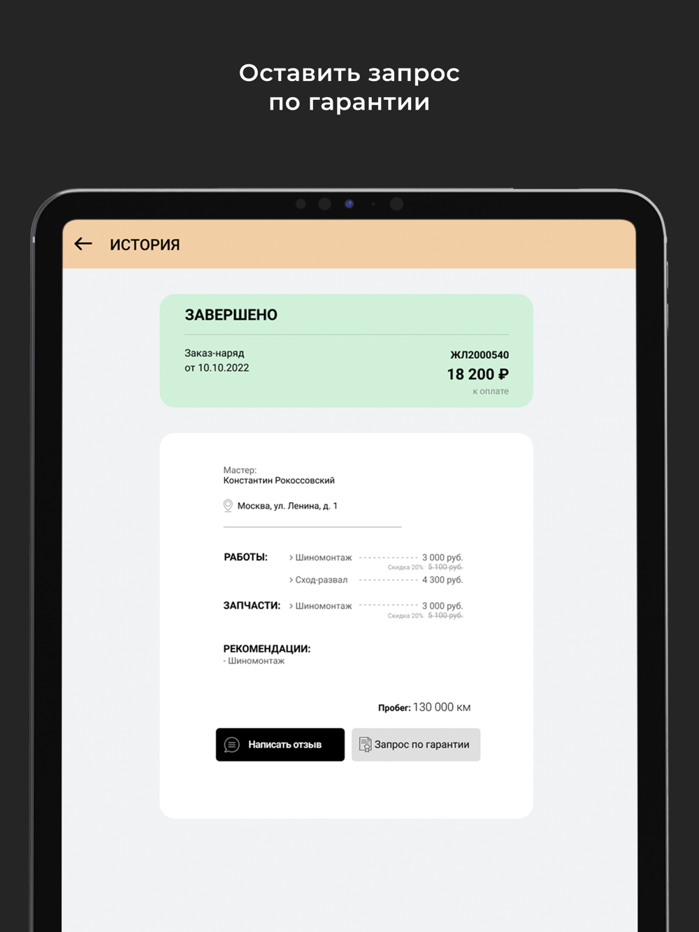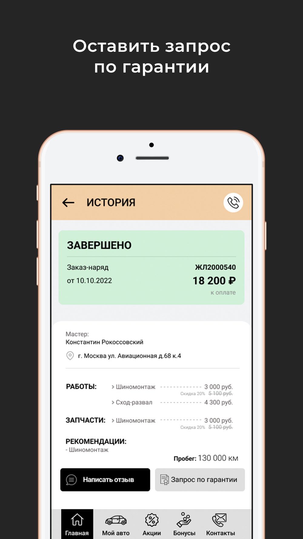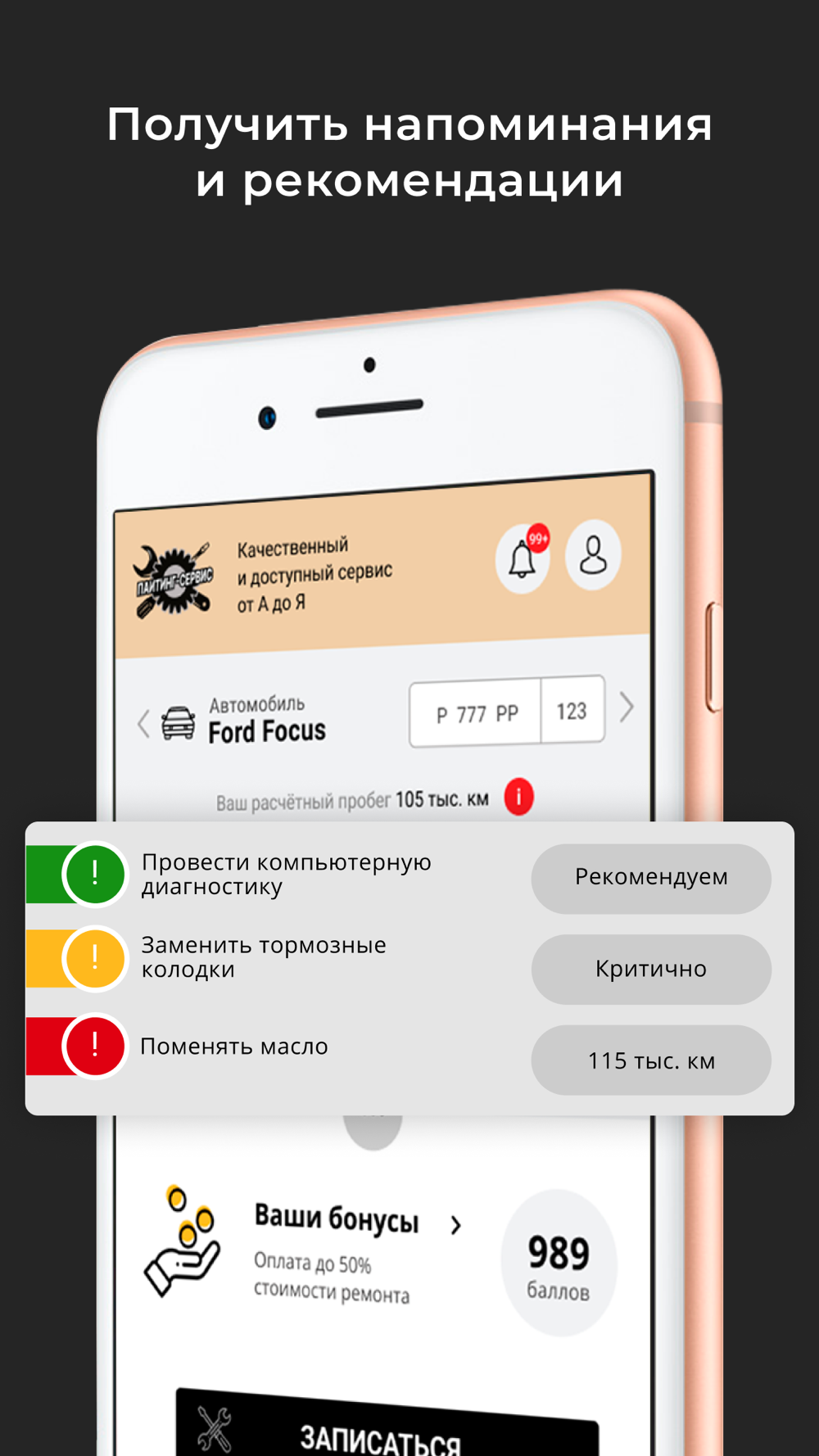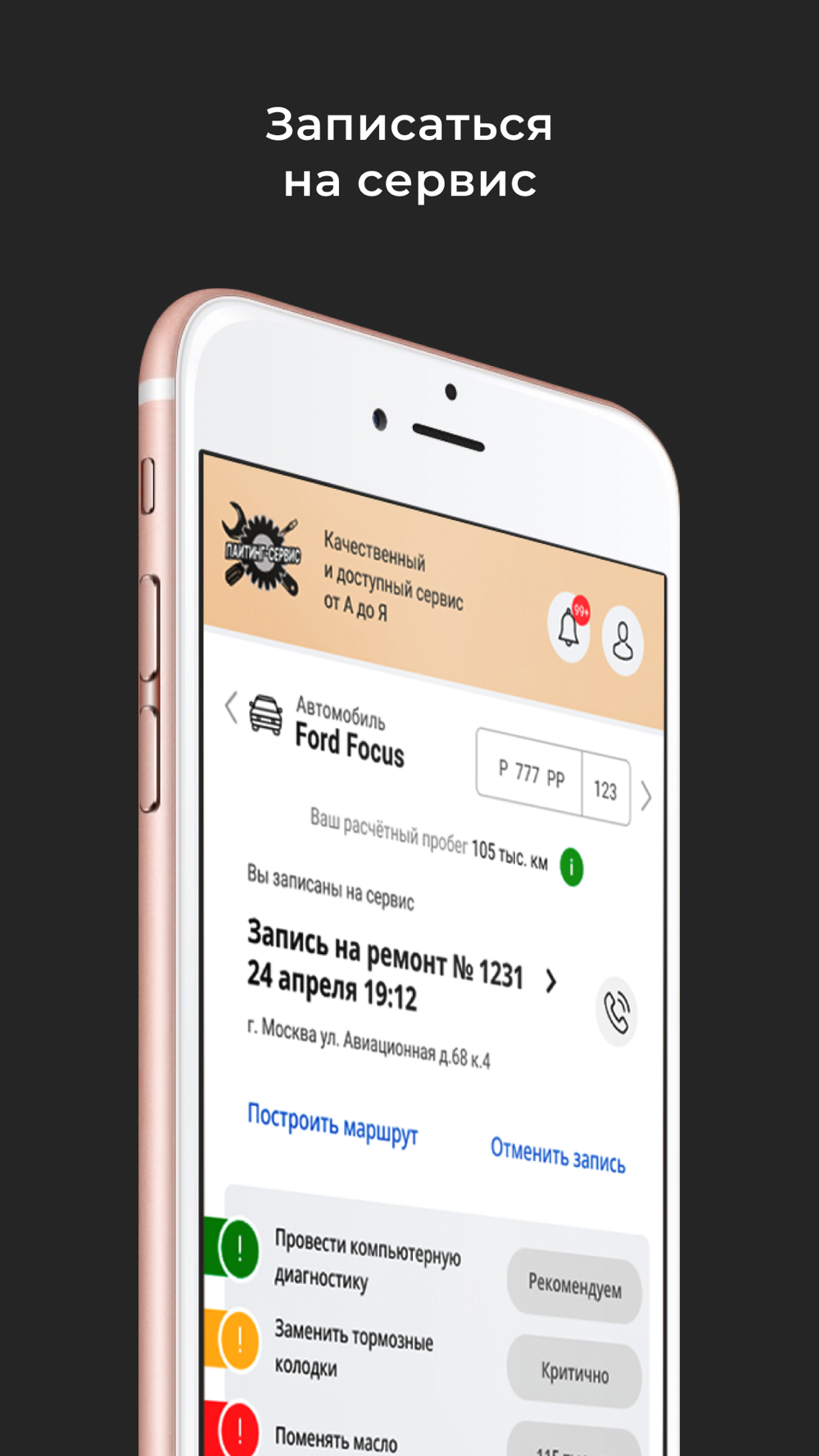 В приложении можно записаться на сервис или техническое обслуживание.
