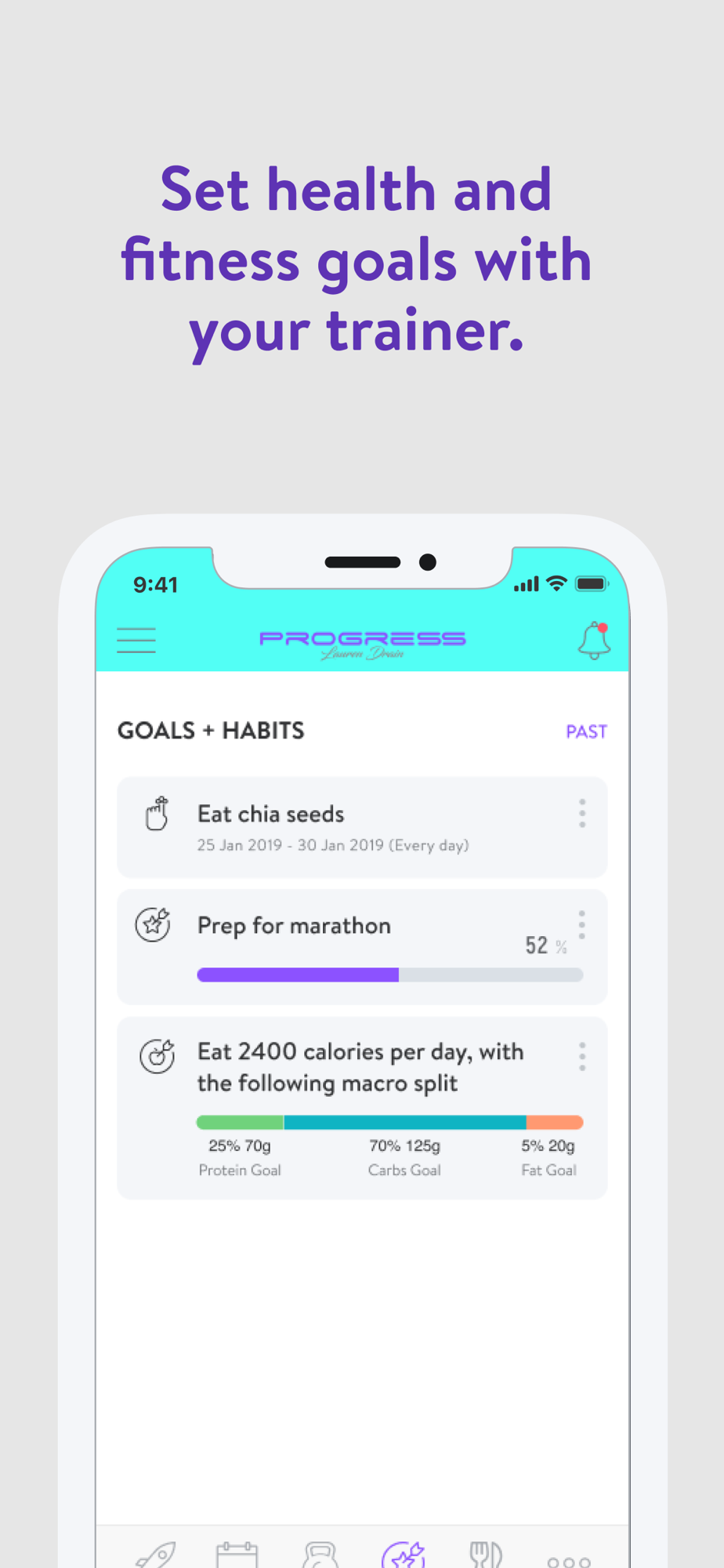 With the Progress by Lauren Drain app, you can start tracking your workouts and meals, measuring results, and achieving your fitness goals, all with the help of your personal trainer.
