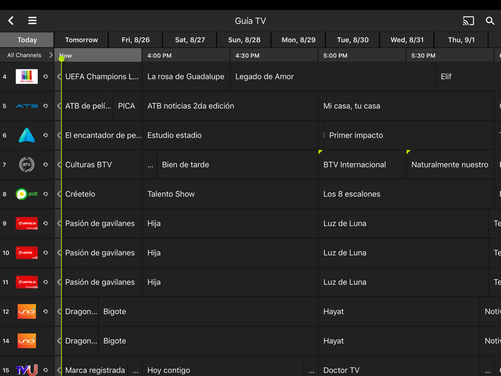 - Grilla de canales de televisión en vivo con todas las señales en HD