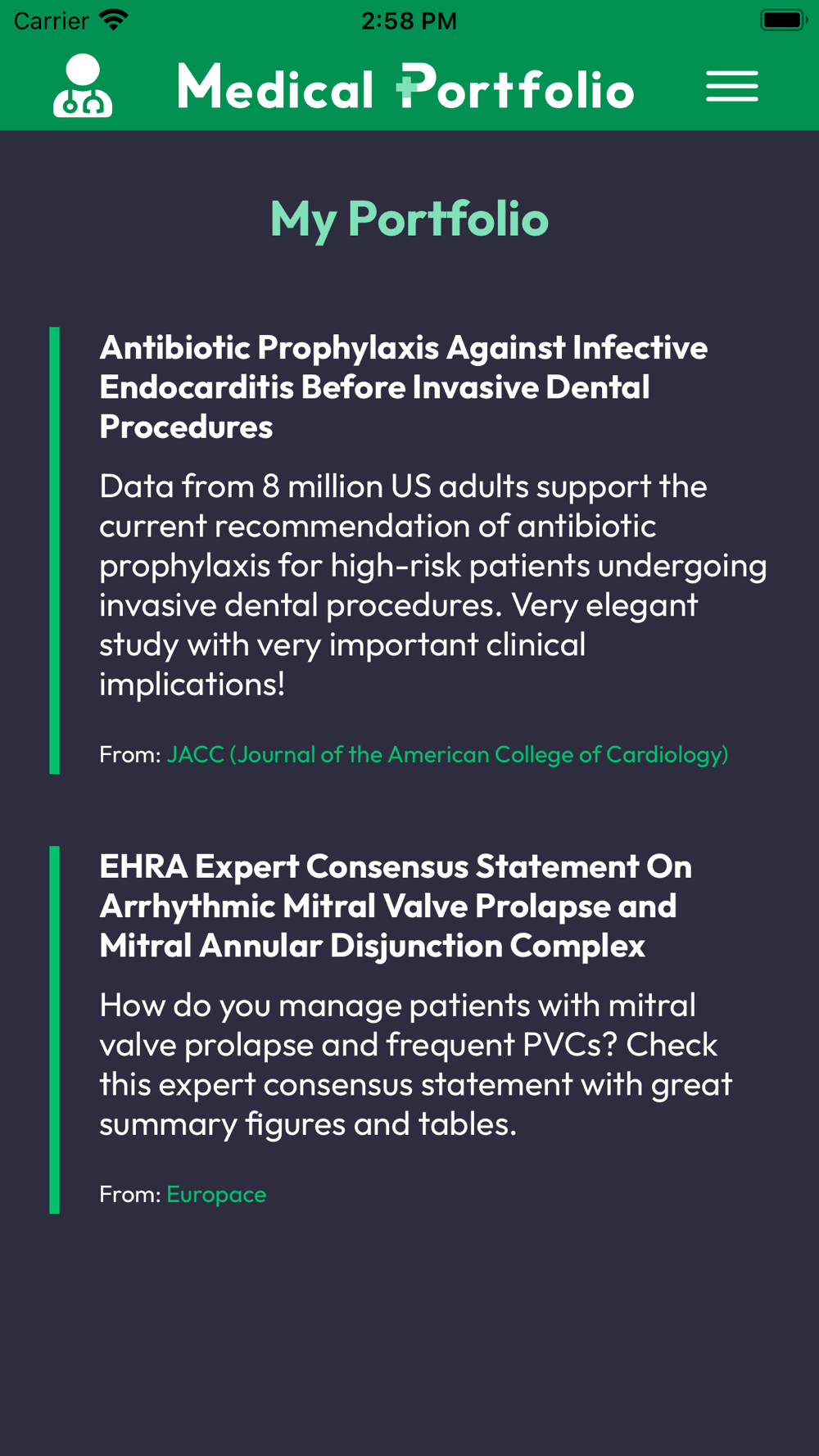 Medical Portfolio adds value to our routine by curating the latest published scientific evidence and highlighting the most impactful papers in the cardiovascular arena.