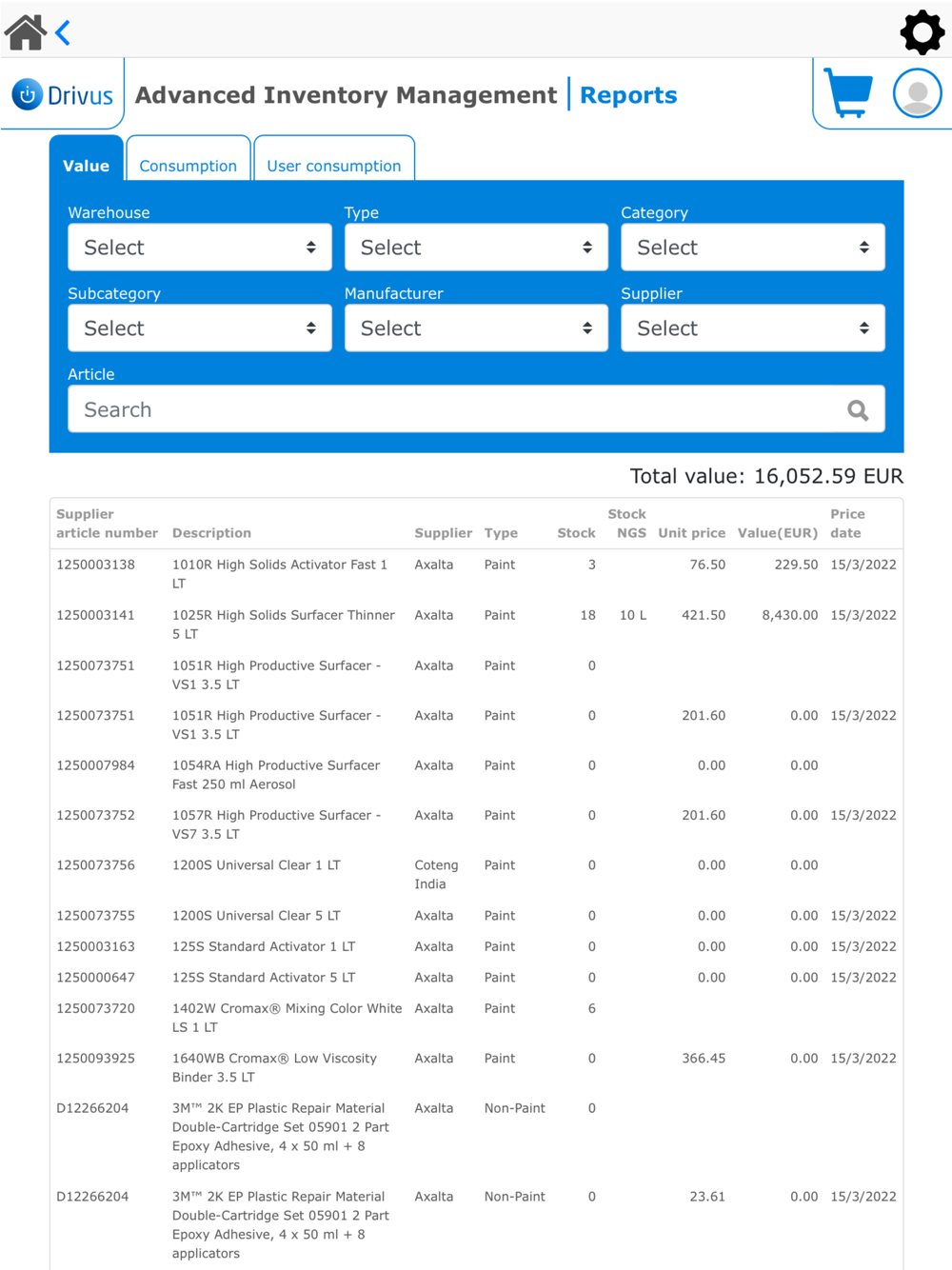 AIM manages multiple inventory management functions, including consumption monitoring in real time and automatically checking stock in and out as it is added and removed. It also automatically generates order lists and manages multiple warehouses from a single screen. It’s simple to monitor order histories and statuses and the automated processes mean shipping is faster, saving time. AIM’s scanner can be used to generate bar codes as well as checking stock in and out. Bodyshops also benefit financially thanks to a fast return on investment on AIM due to no excess inventory.