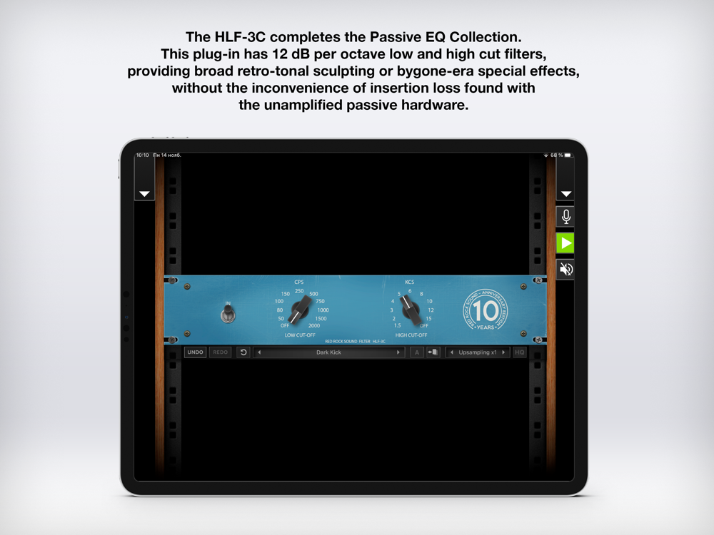 The HLF-3C completes the Passive EQ Collection. This plug-in has 12 dB per octave low and high cut filters, providing broad retro-tonal sculpting or bygone-era special effects, without the inconvenience of insertion loss found with the unamplified passive hardware.