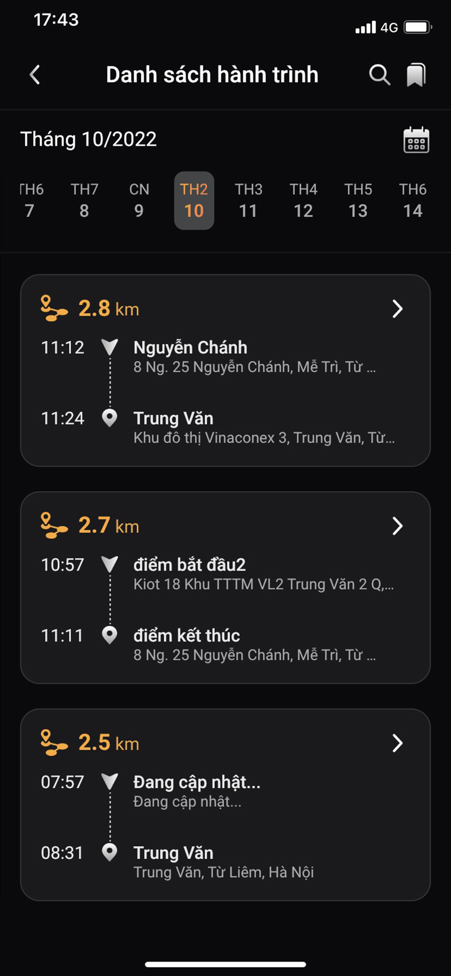 Quản lý vị ví, lộ trình di chuyển của xe thông qua thiết bị IP24, MyCar+