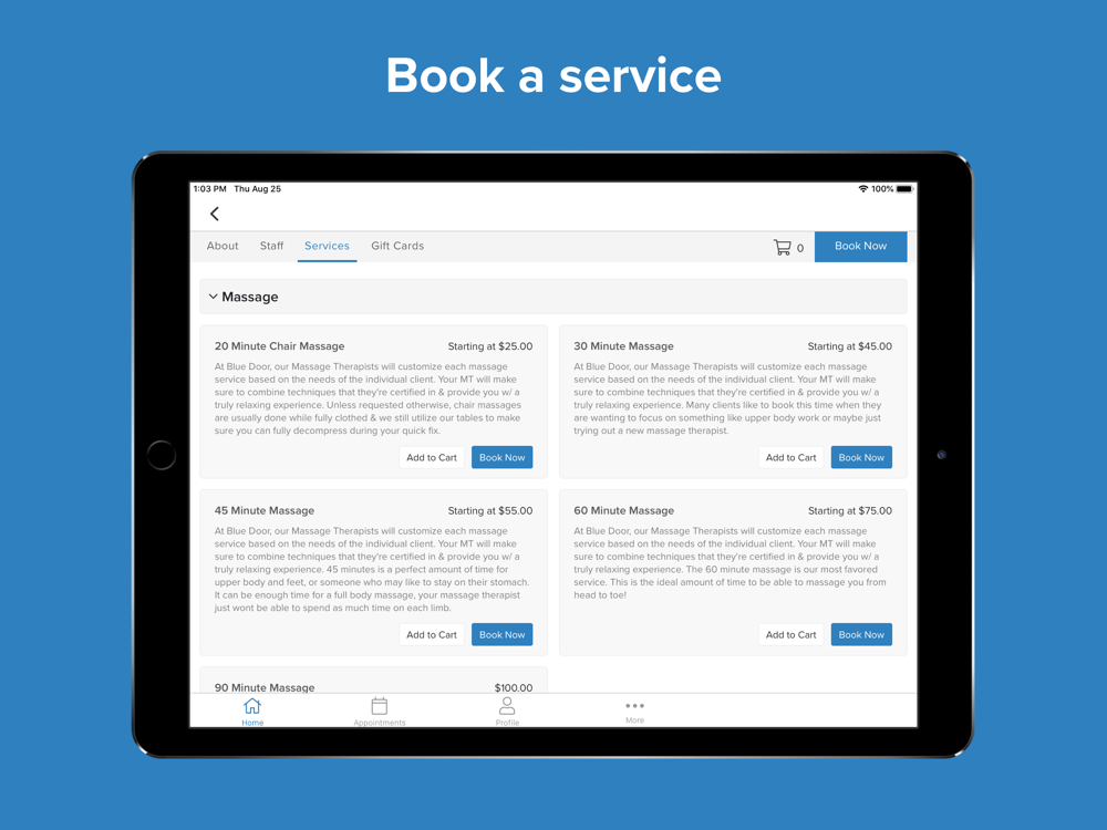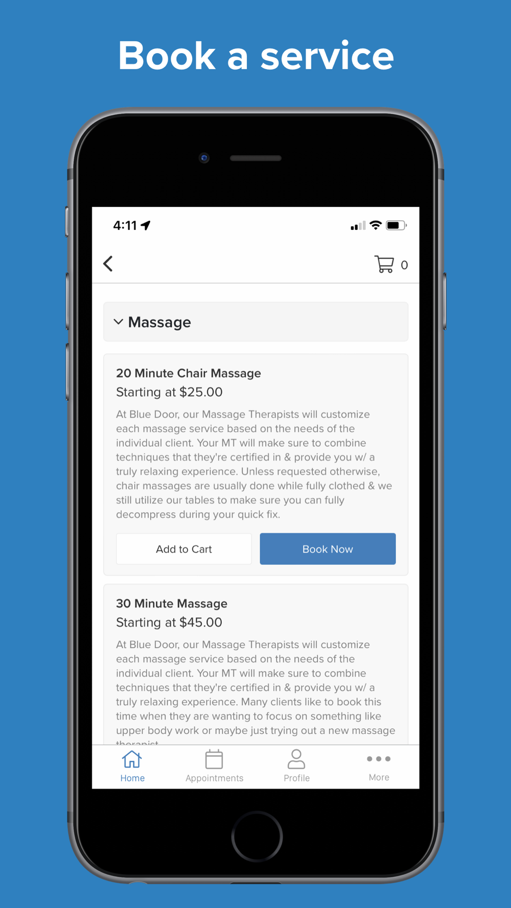 Your next appointment is just a few taps away — download the Blue Door Massage and Spa app for free today.
