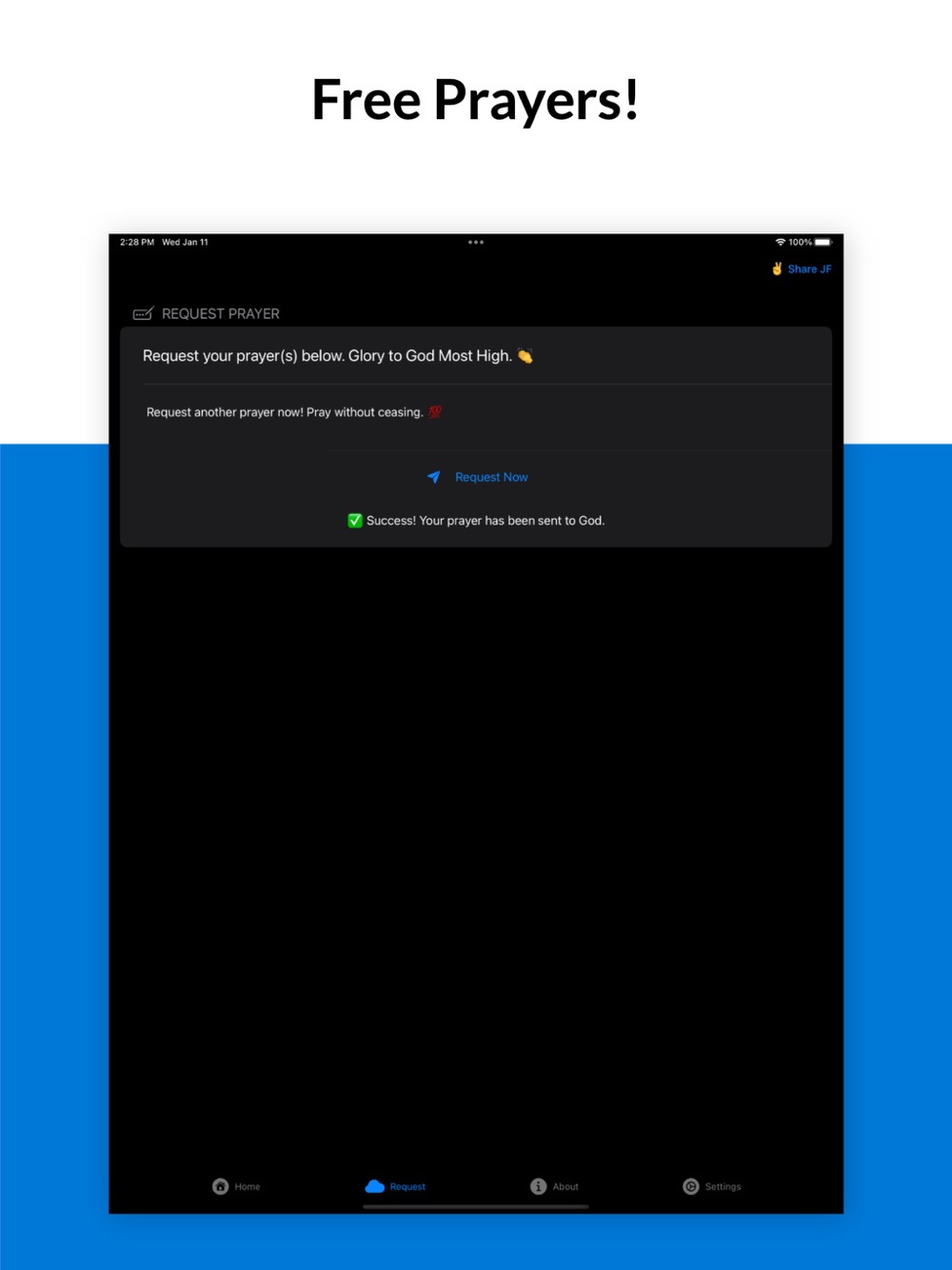- Share JF links throughout app for easy app sharing (word of mouth; please share with all who may benefit from this free useful prayer app, thank you for sharing and God bless you).
