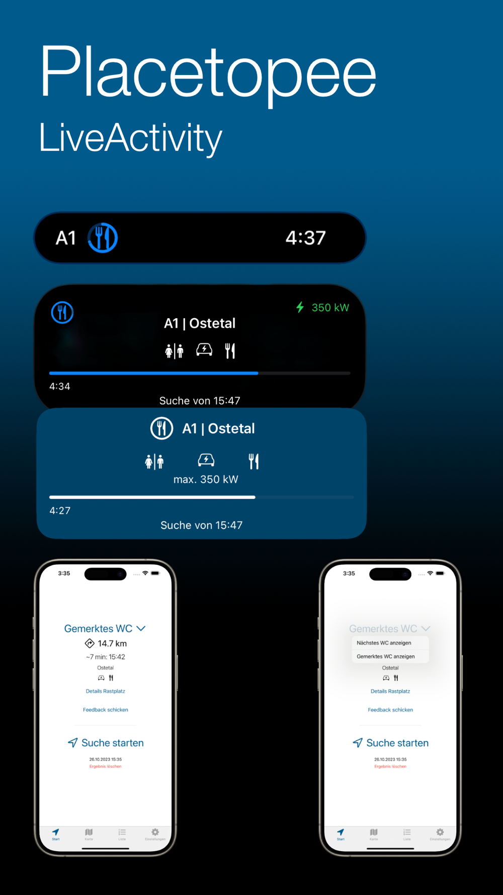 You surely know the situation that you are looking for the next toilet along a highway. And you are sure that the next one should be coming soon. But then you're not quite so sure. That's why we have solved the problem of finding toilets along highways with this app.