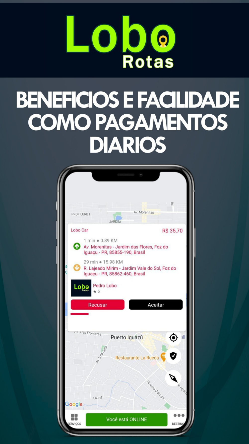 Aplicativo destinado aos motoristas do Lobo Rotas - Passageiros. Feito para simplificar viagens, de uso fácil, rápido e intuitivo!