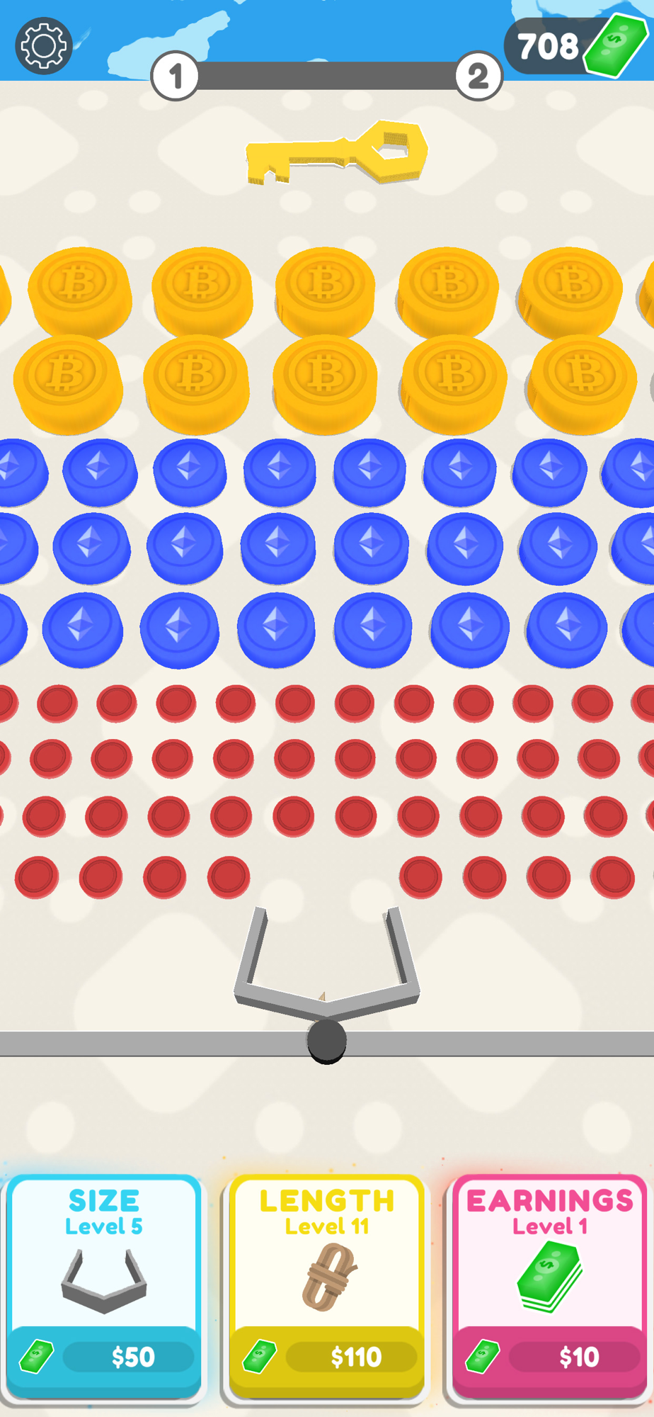 Upgrade the hook to clear the levels and reach the key. A relaxing and enjoyable game to pass your time having fun.