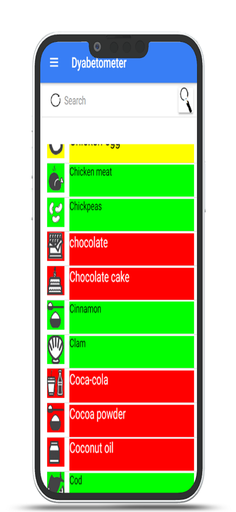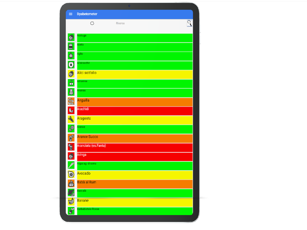 Una app che ti consente prima di mangiare di controllare il contenuto in zuccheri di quell'alimento con un indice di pericolosità dal verde al rosso.