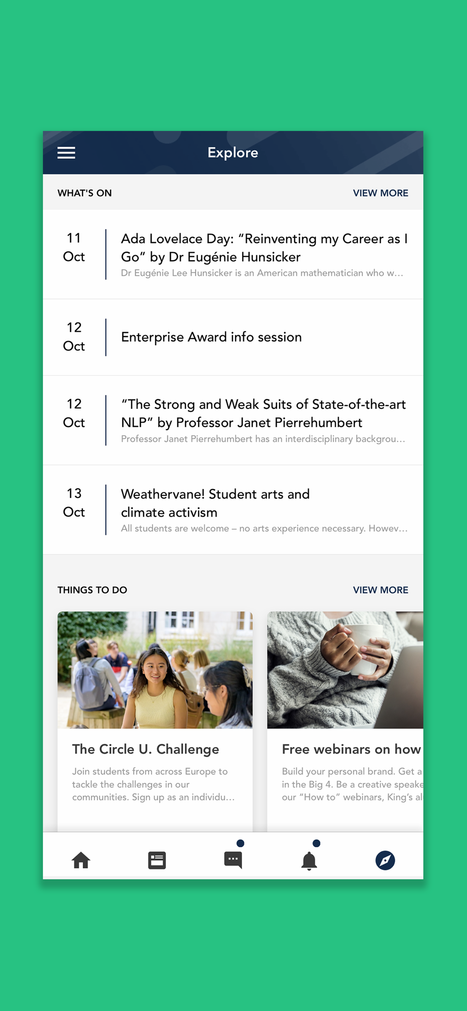 Want to hear what’s going on across King’s campuses? It’s in the app.