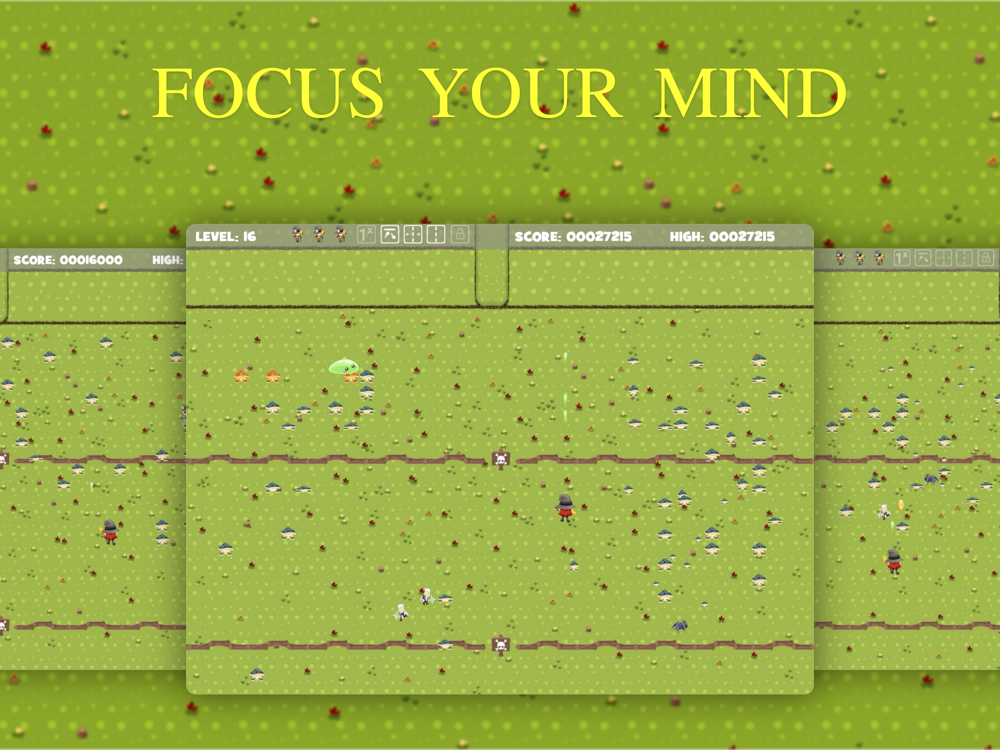 Shooting and destroying mushrooms with randomly generate coins that can be collected for points and extra weapons.