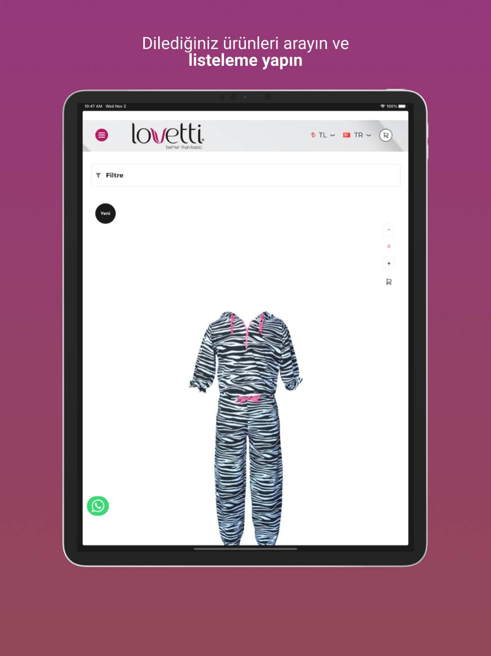 Özetle Lovetti ; bebek ve çocuk giyim sektöründeki 25 yıllık deneyimi ve birikiminden aldığı güç ile orta ve uzun vadede; içinde bulunduğu coğrafyanın potansiyeline katma değer kazandırarak küresel ölçekteki majör oyuncular arasına girmeyi, %100 yerli sermaye ile dünya markası olmayı hedeflemektedir.1-14 yaş grubunda kız ve erkek çocuklar için 12 ay boyunca kullanılan basic kategorisinde 8000 üzeri option sayısıyla tayt, body ve tshirt gibi 60 ve üzeri derin renk seçeneğine sahip ürünlerini nihai tüketiciye sunmaktadır.