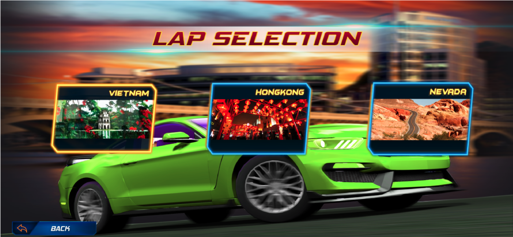 Touch the left and right arrows, brake, and accelerator to move the car into career mode.