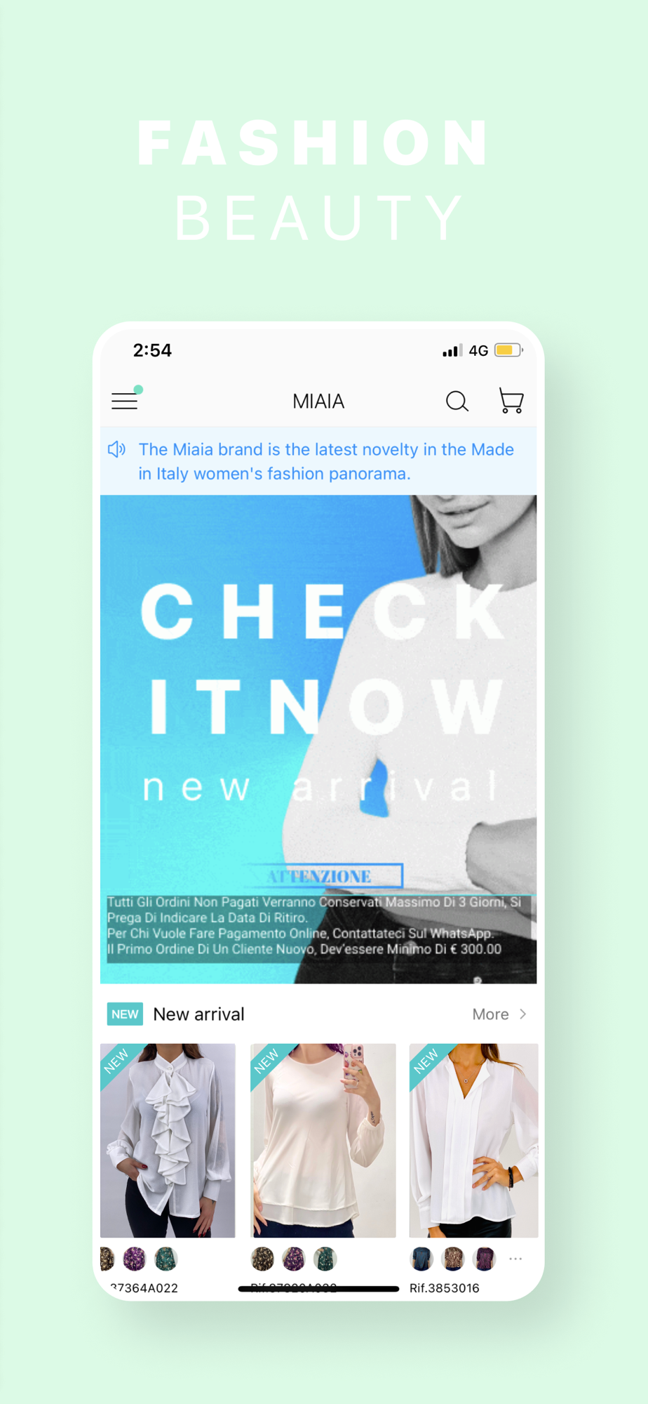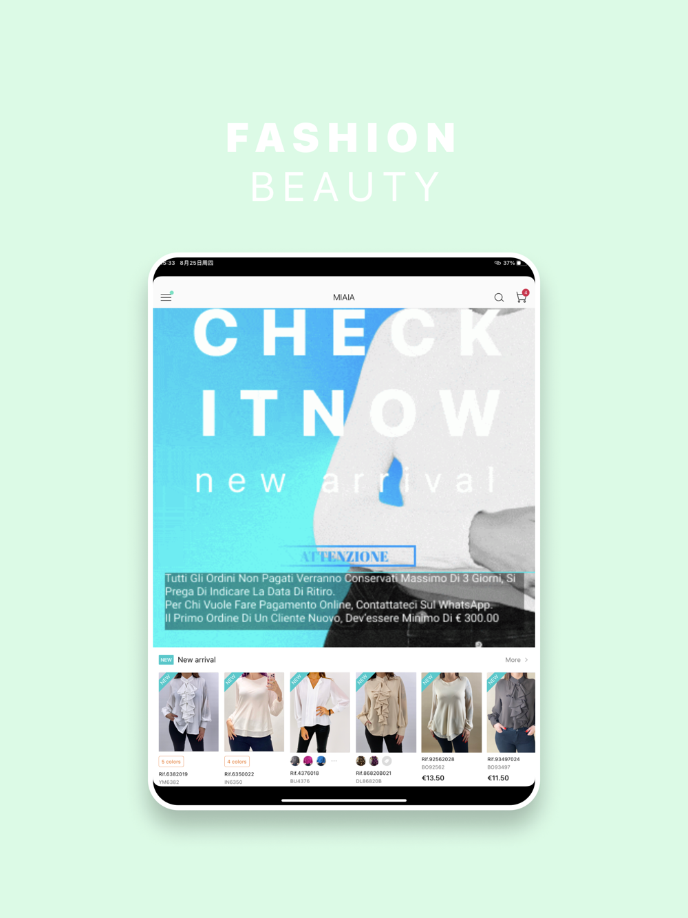Miaia è un app professionale per il mondo della moda, permette la visualizzazione del catalogo con pochi semplici passaggi. I nuovi utenti possono fare la richiesta di registrazione gratuita direttamente dall'applicazione, una volta che la richiesta viene accettata, il cliente potra' visualizzare tramite l'app tutte le informazioni sui prodotti ed effettuare gli ordini.