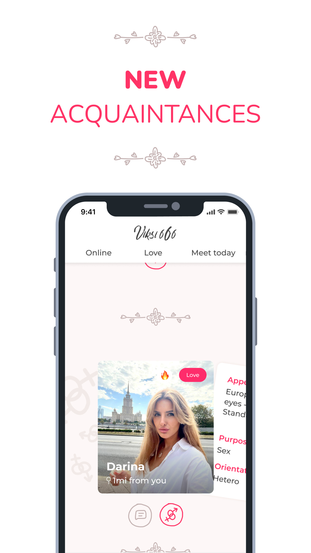 Brilliant dates for love and sex, thousands of girls and guys near you, the main thing is to choose the purpose of dating and the search radius. In the app Viksi666 you will find everything you're looking for!