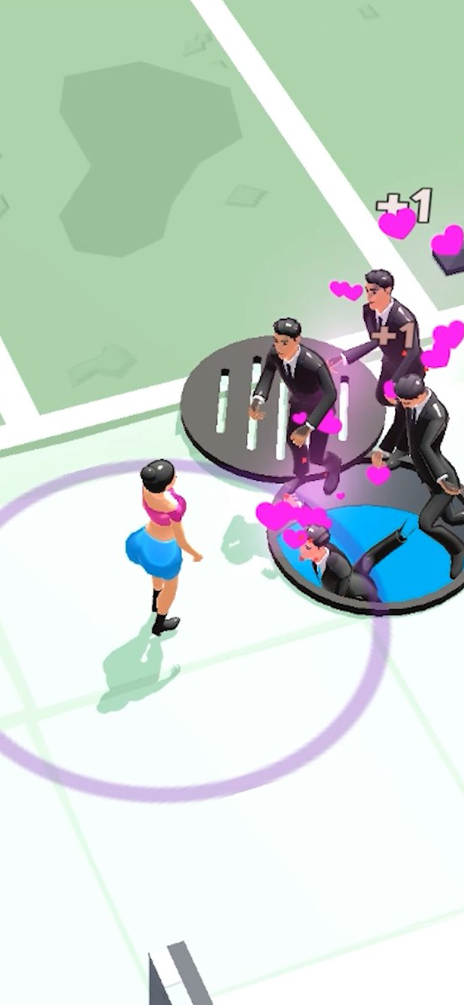 lead the lovers to the holes on the ground, collect dropped money from the hendsum guys, spend it and gain more beauty to attract everyone around