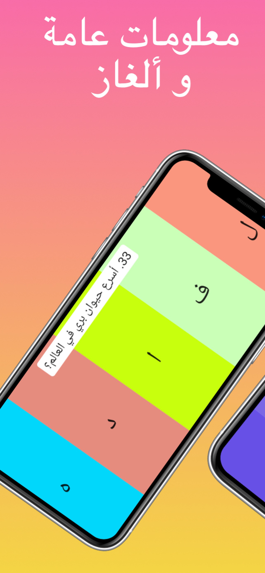 أكثر من 100 مرحلة تحتوي على أسئلة ثقافية عامة و تناسب جميع الأعمار.