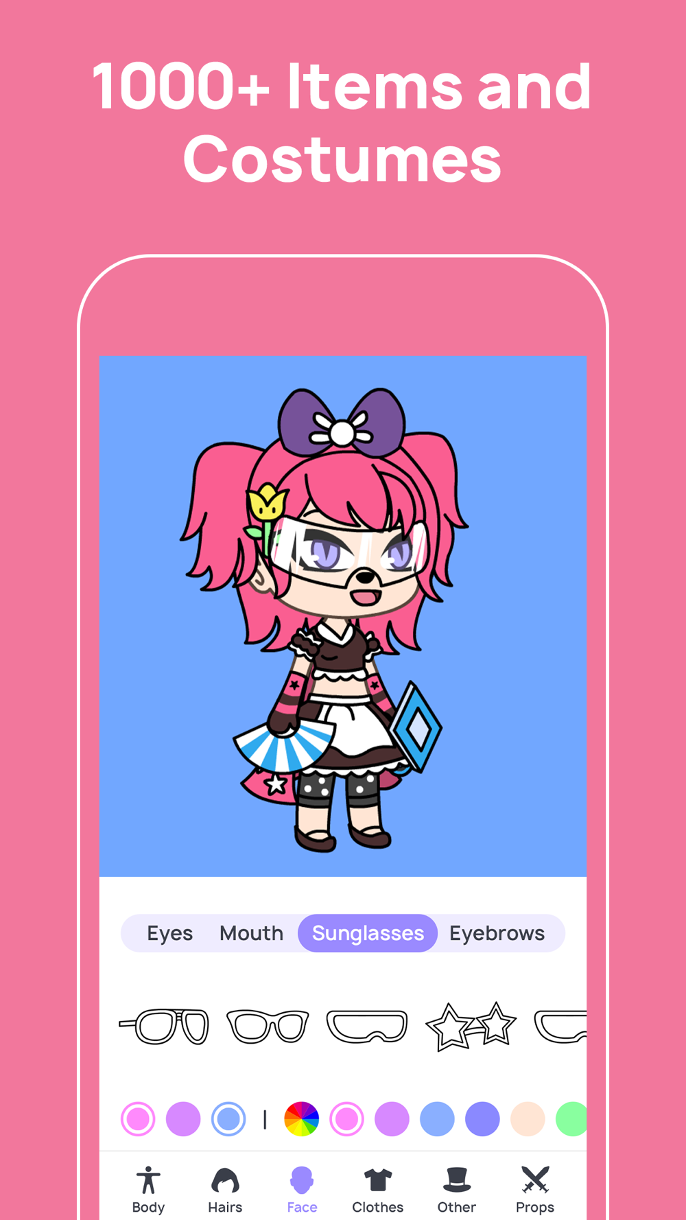 - Mix & match the dresses with character hairstyles, eyes, mouth, and more!