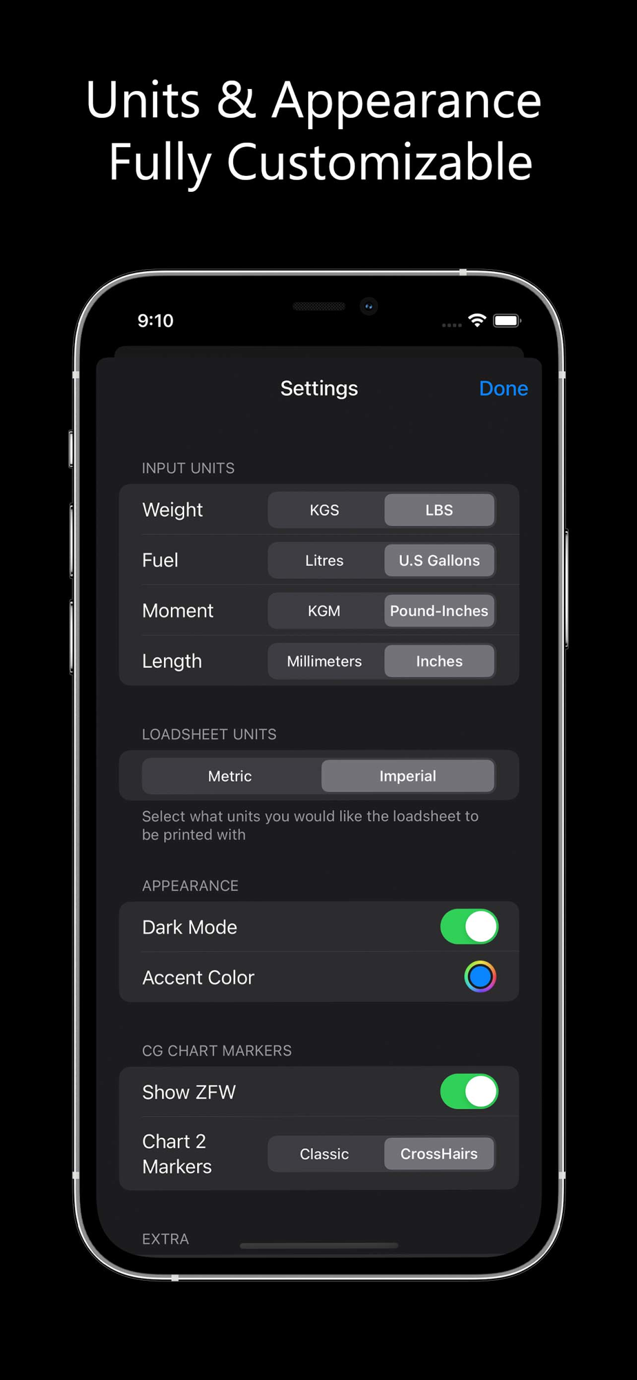 - CUSTOM UNIT SELECTION FOR FUEL, WEIGHT, MASS, MOMENT