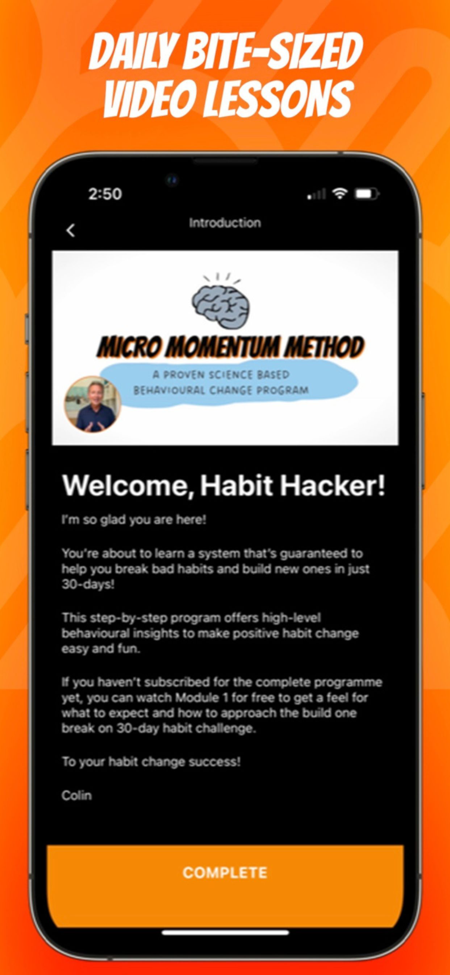Once you subscribe, you'll have access to the full, scienced-based programme, all the app's features, and the 30-Day Build One Break One Habit Challenge.