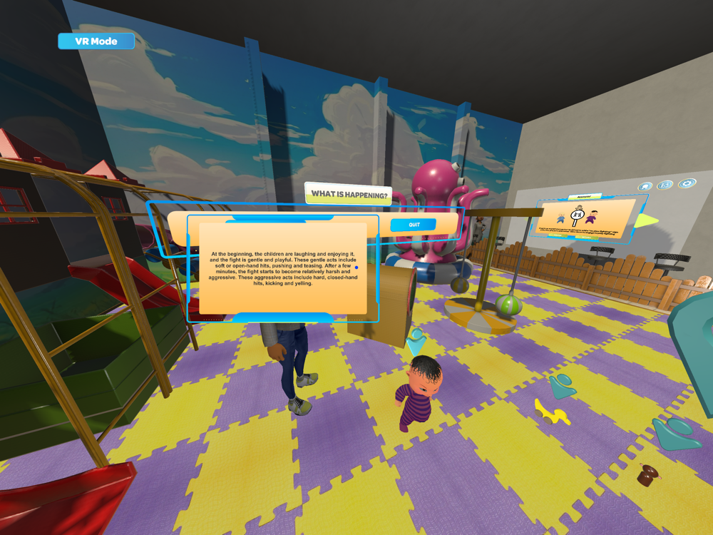 This eLearning module applies Virtual Reality (VR) technology to build an immersive, virtual learning environment for students to experience a day in a local crèche. It is designed for the course "Parenting in Infancy and Toddlerhood: Theories and Practices", for educational purposes and non-commercial use. This is the first of its kind in Hong Kong, providing students with a safe environment to gain first-person experience of caring and teaching groups of infants and toddlers in childcare settings. Upon completion of this module, students will be able to (1) demonstrate a critical understanding and reflection of care routines and challenging behaviours of infants and toddlers in group-based childcare settings; (2) evaluate and redesign learning environments developmentally appropriate for infants and toddlers.