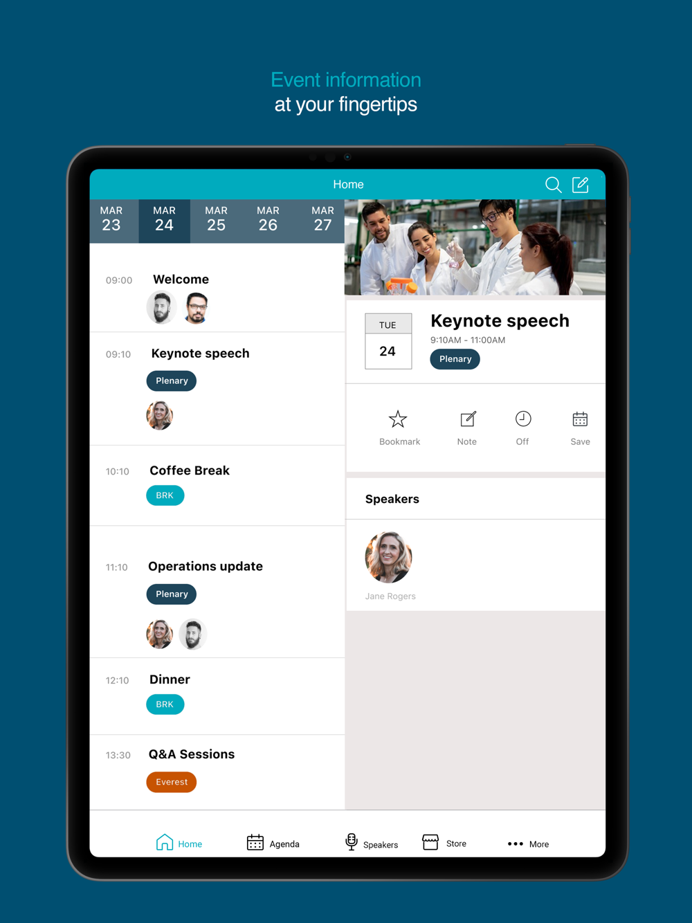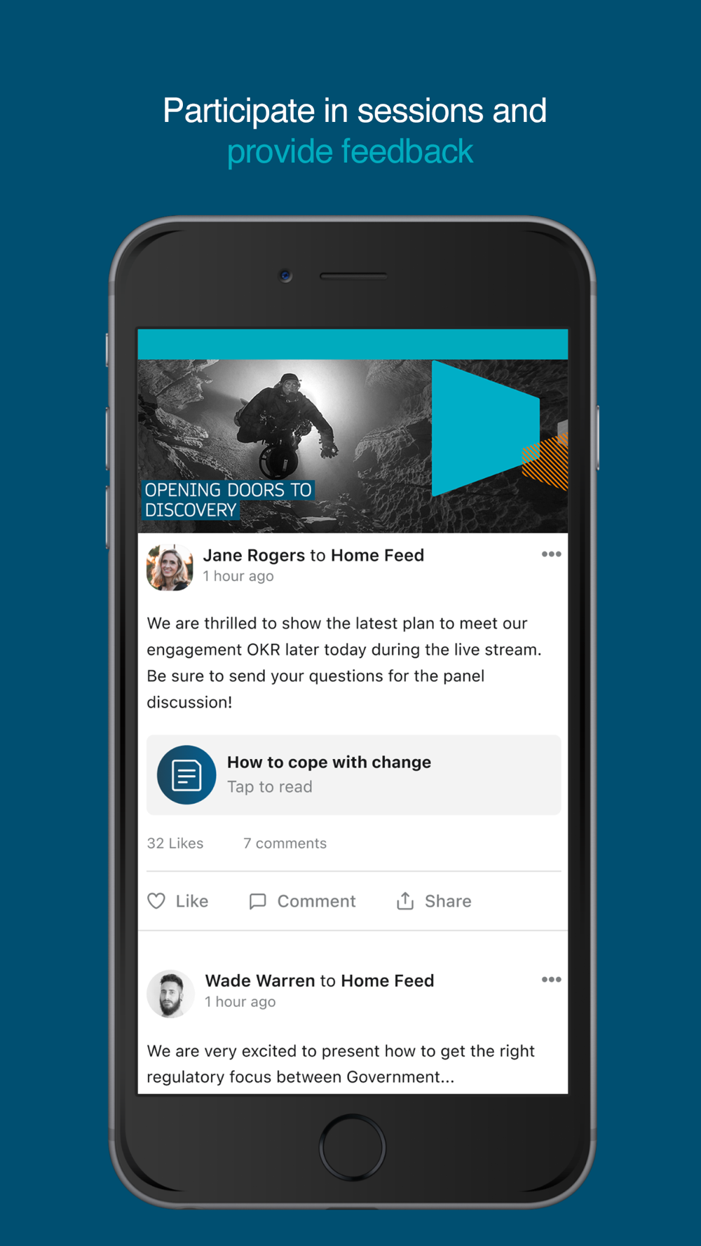 Their event journey can include fun, friendly challenges that reward actions and create memorable, collective experiences. Access all attendee and speaker profiles, content and session materials, location maps, share photos and experiences, and receive up to the minute notifications with all the latest information and activities.