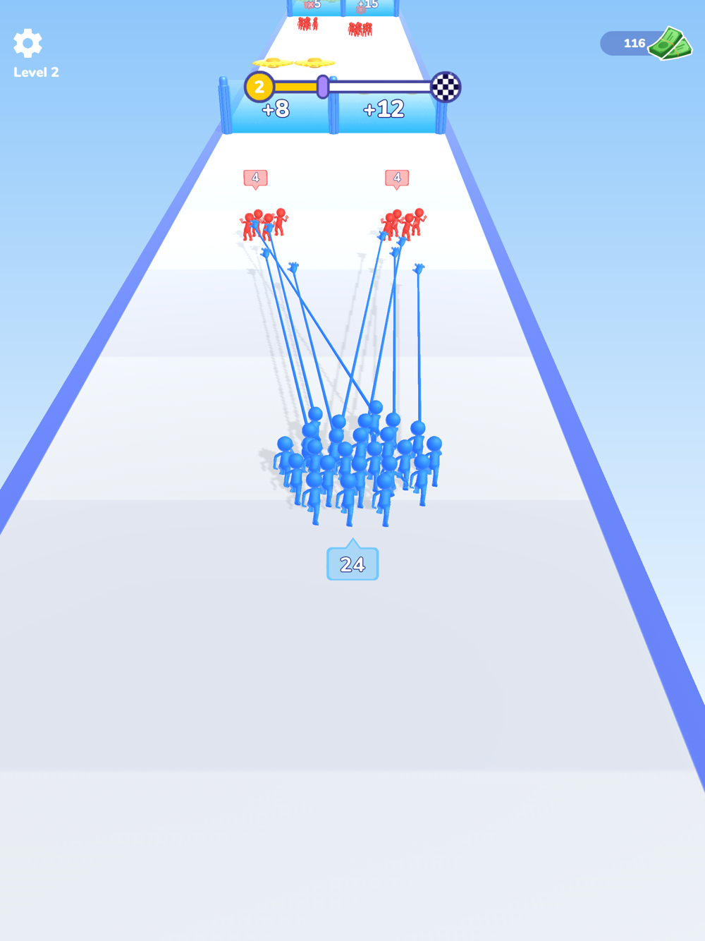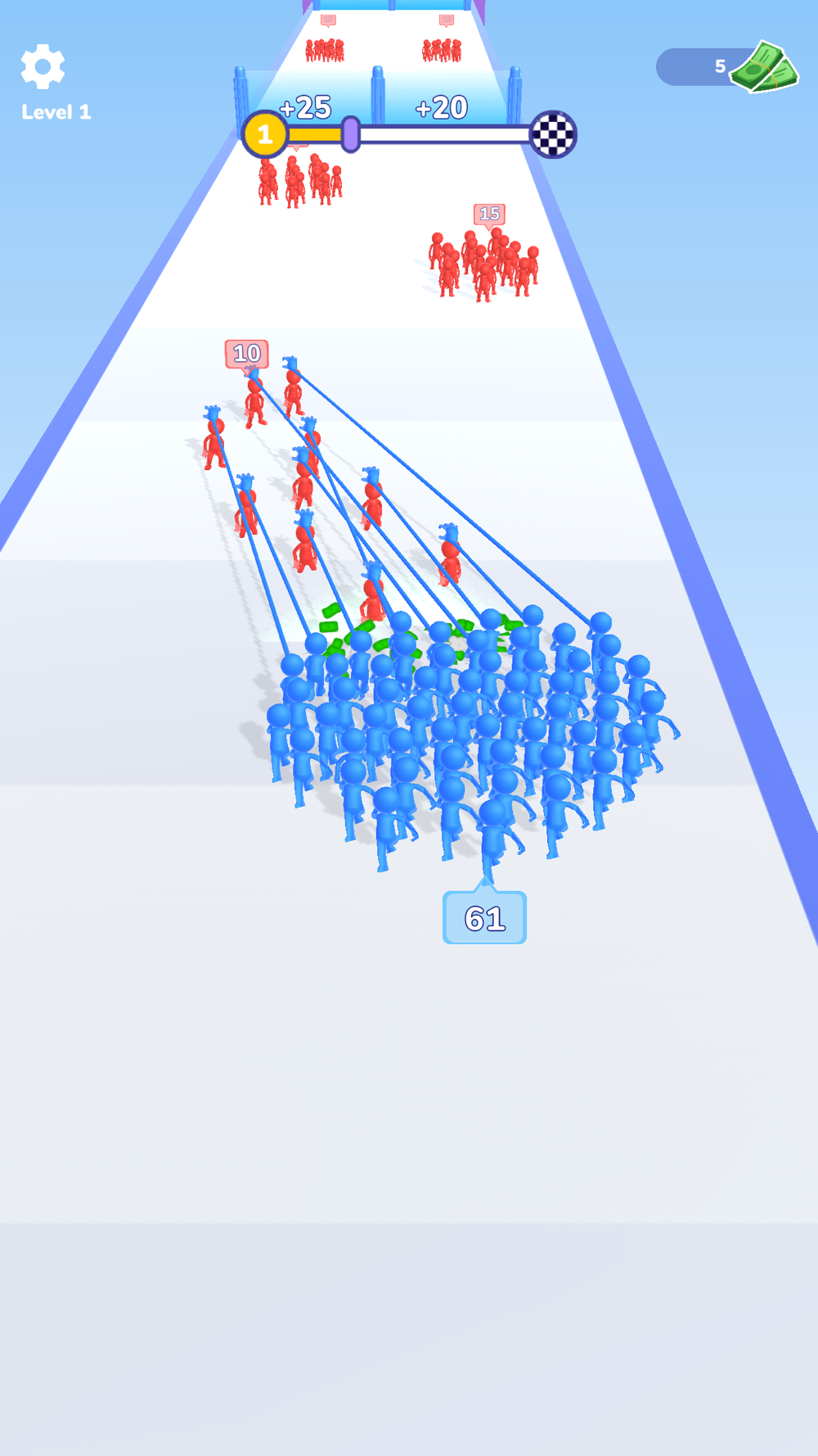 Choose the best gate and avoid obstacles to have the maximum amount of stickman. Fight against the enemy crowd by grabbing them and explode, like a kamikaze!