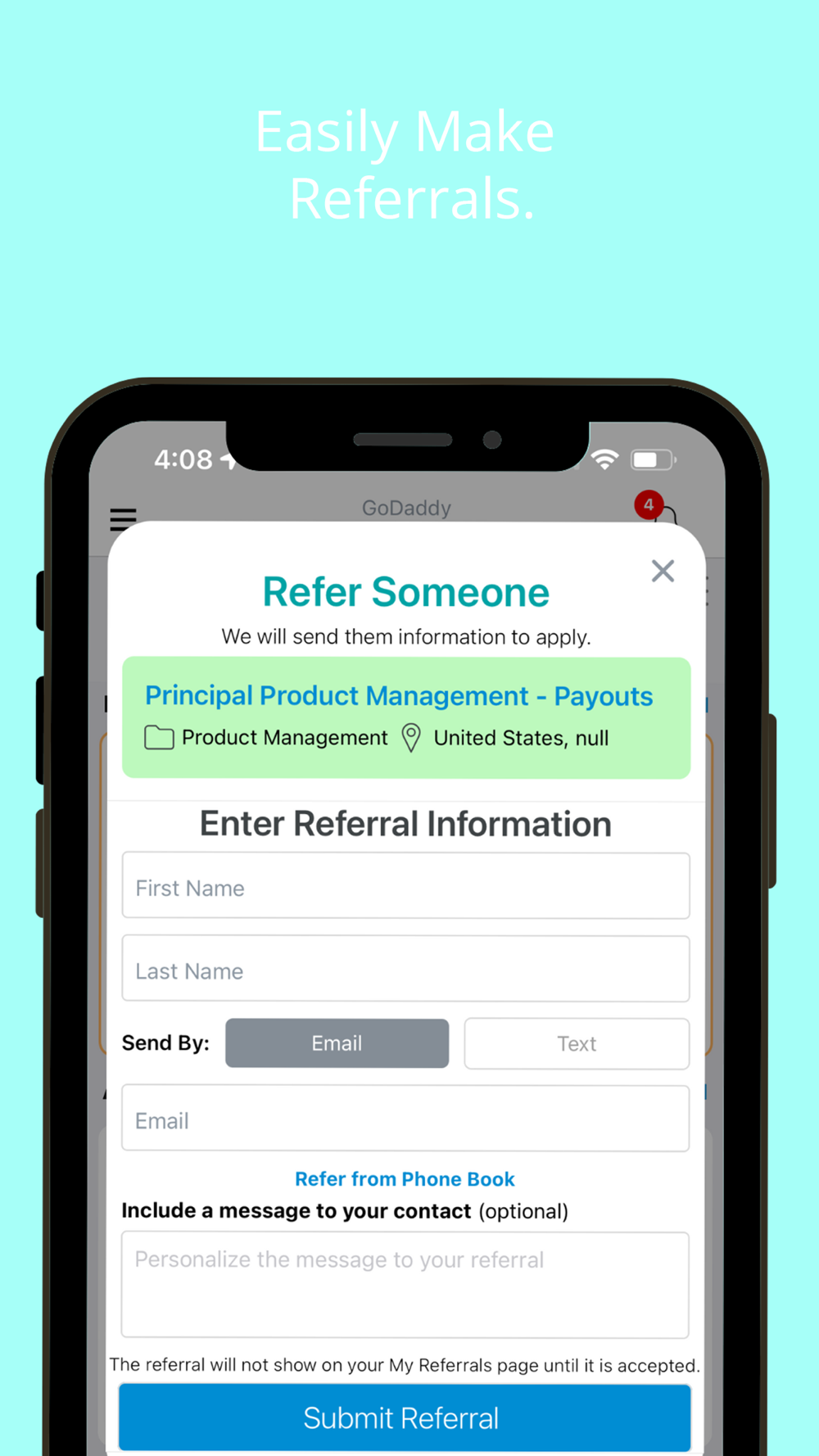 Bloom is a full Employee solution for creating referrals and applying for jobs at GoDaddy internally.