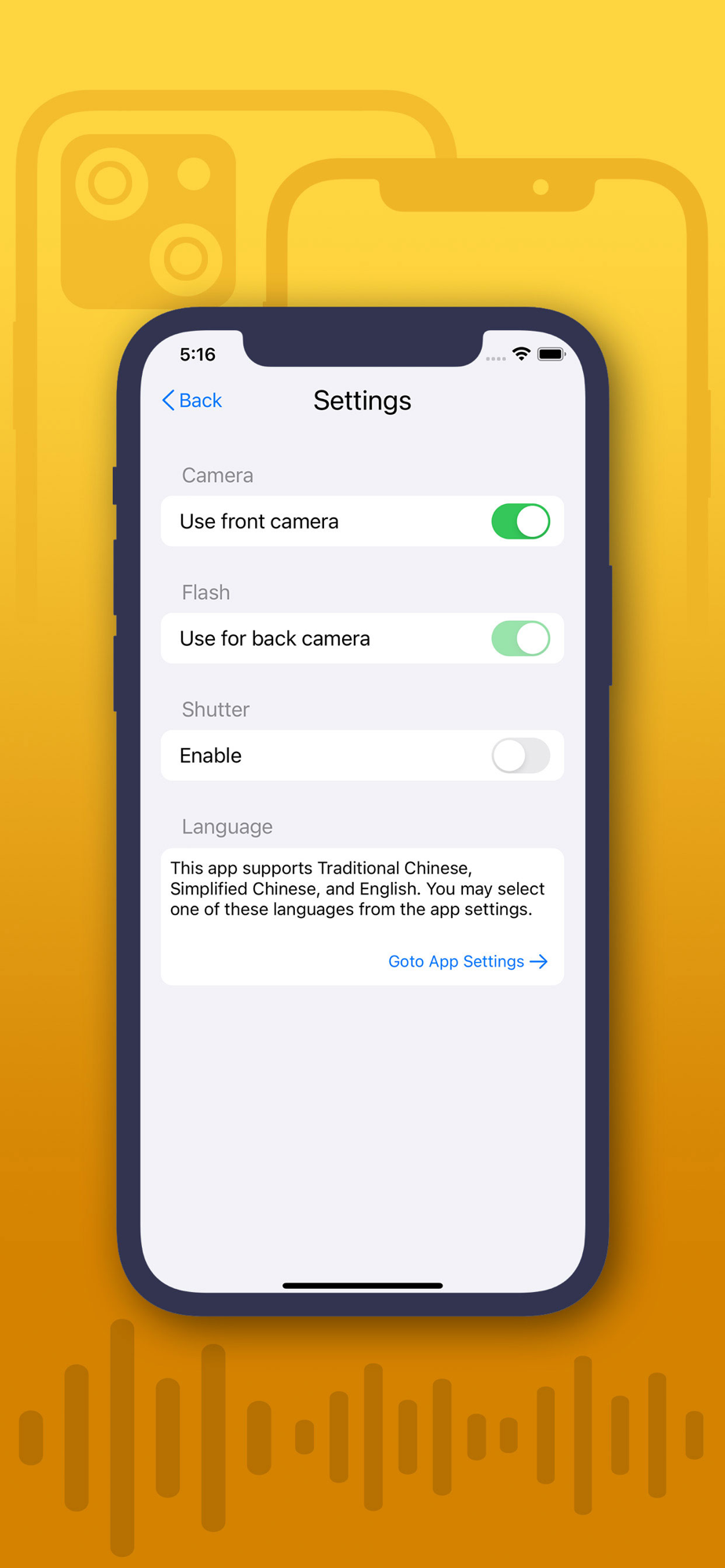 'SelfID Photo' helps to solve these problems. First of all, the level and tilt indicators in the camera assists you setting the phone in a proper attitude, no matter you are using a tripod or holding it by hand. Secondly, 'SelfID Photo' uses A.I. to locate your face and provides audio guidance (currently, English, Chinese Mandarin and Chinese Cantonese) to let you position yourself. And when you are in the right position, stay steady, the APP will take the picture automatically for you. That means, if you are using the back camera for selfie, you are still be able to 'locate' yourself and take a nice ID photo without even touching the shutter.