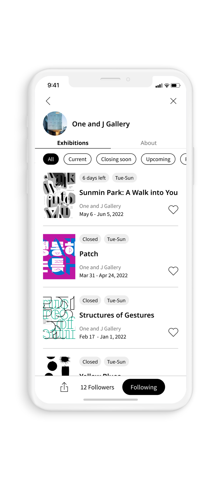 To use, tap the like button on the exhibitions so that you can record your favorite shows and archive your visits.