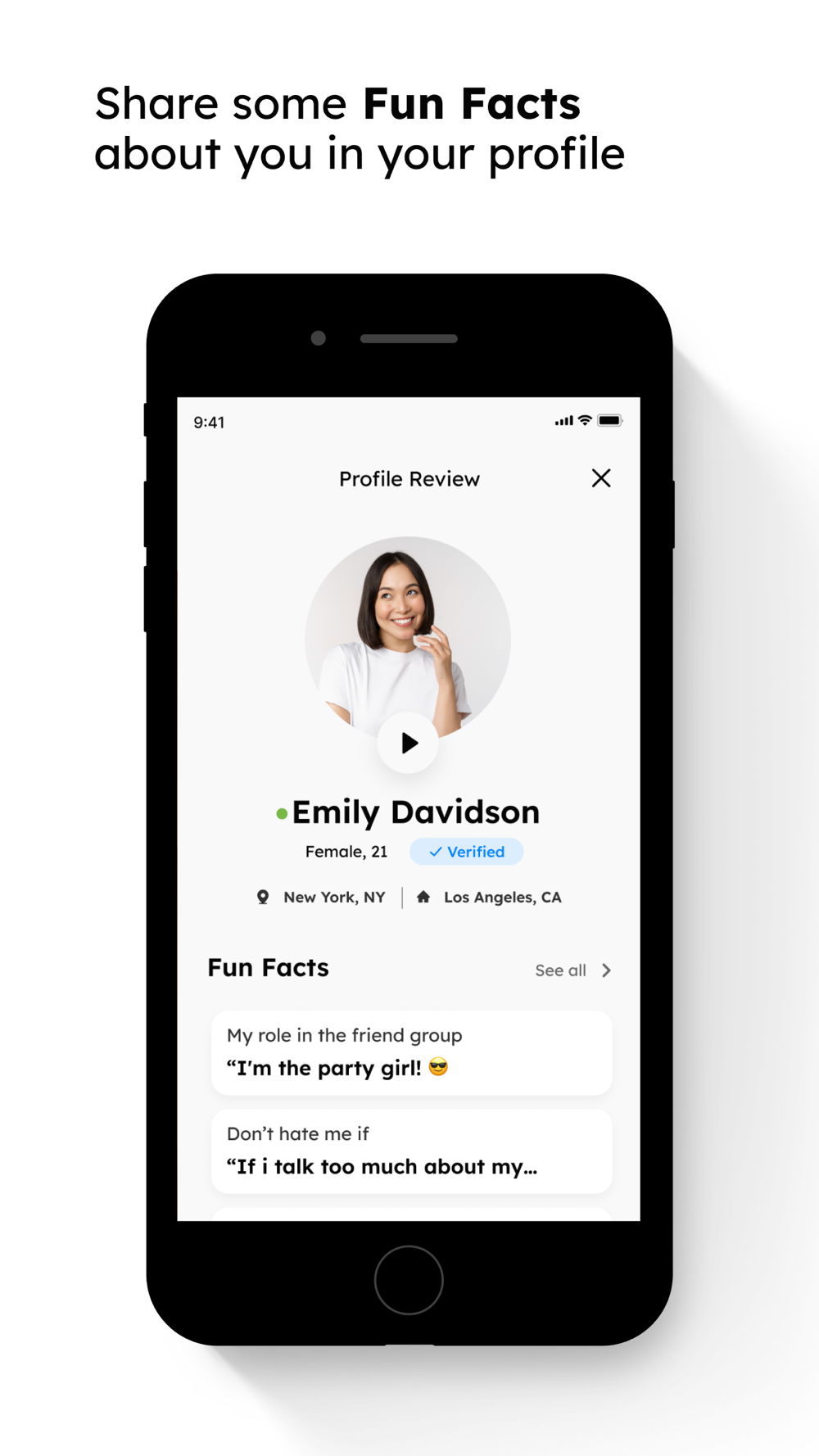 Feeling a little more daring? Try jumping straight into a live-roulette speed-dating experience. We’ll match you with other people who meet your preferences that are online and ready to connect for a gamified 3-minute speed date, complete with ice-breaker questions and conversation drivers. No spoilers: the picture will be blurred at the beginning, revealing your date’s face as the date goes on - so you can focus on connecting, first. And if you both feel like 3 minutes isn’t enough, you’ll have the opportunity to extend the call for an additional 3 minutes (if you both agree, of course) and let that connection keep growing. Same rules apply- you’ll have the opportunity to see the person’s full profile with fun facts, intentions, and more photos giving you the chance to decide if it’s a match or not as the date goes on.