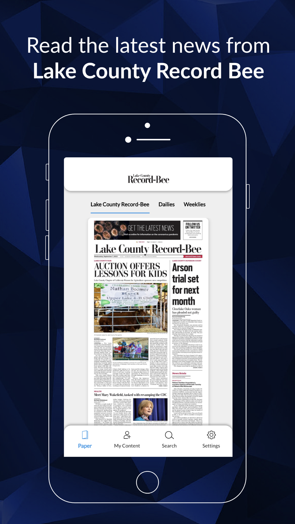 Lake County Record Bee e-EditionThe Lake County Record Bee e-Edition is available for your mobile device. The Lake County Record Bee e-Edition is a digital replica of the print newspaper with standard touch screen navigation features you would expect. Get your local news in the format you prefer. If you have an existing subscription, simply login using your current username and password. If not, please contact us to learn how to sign up