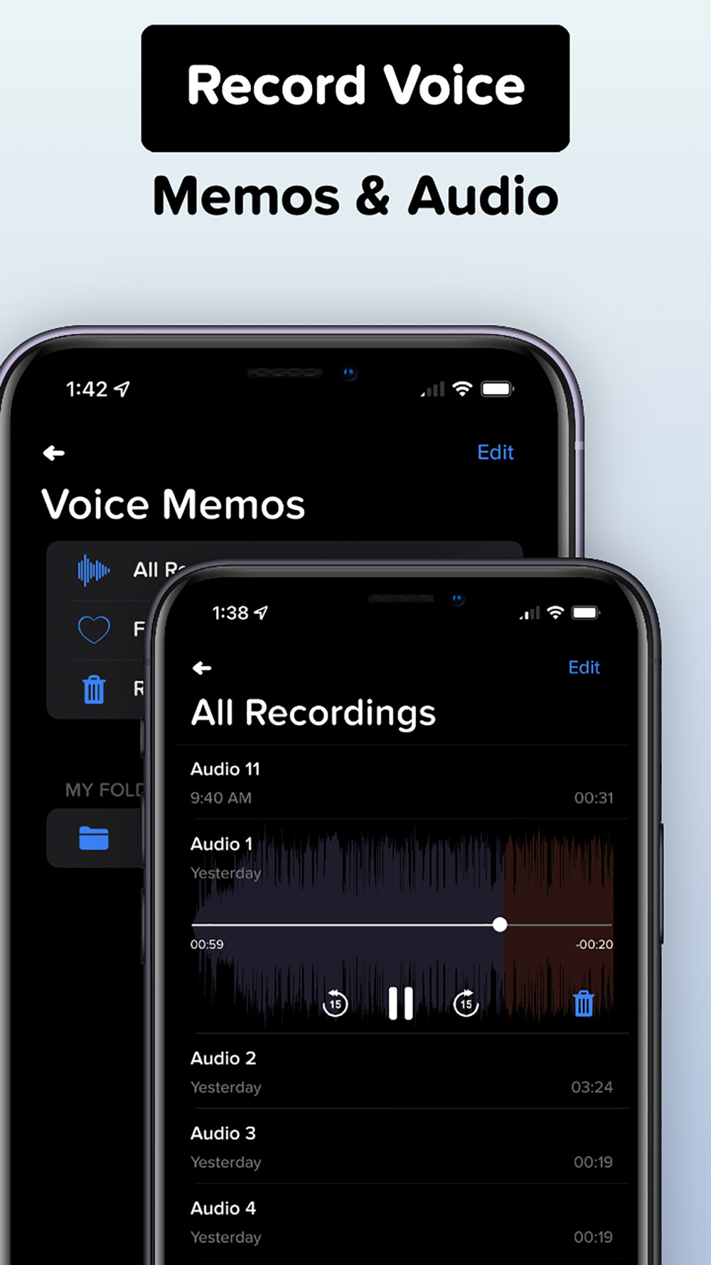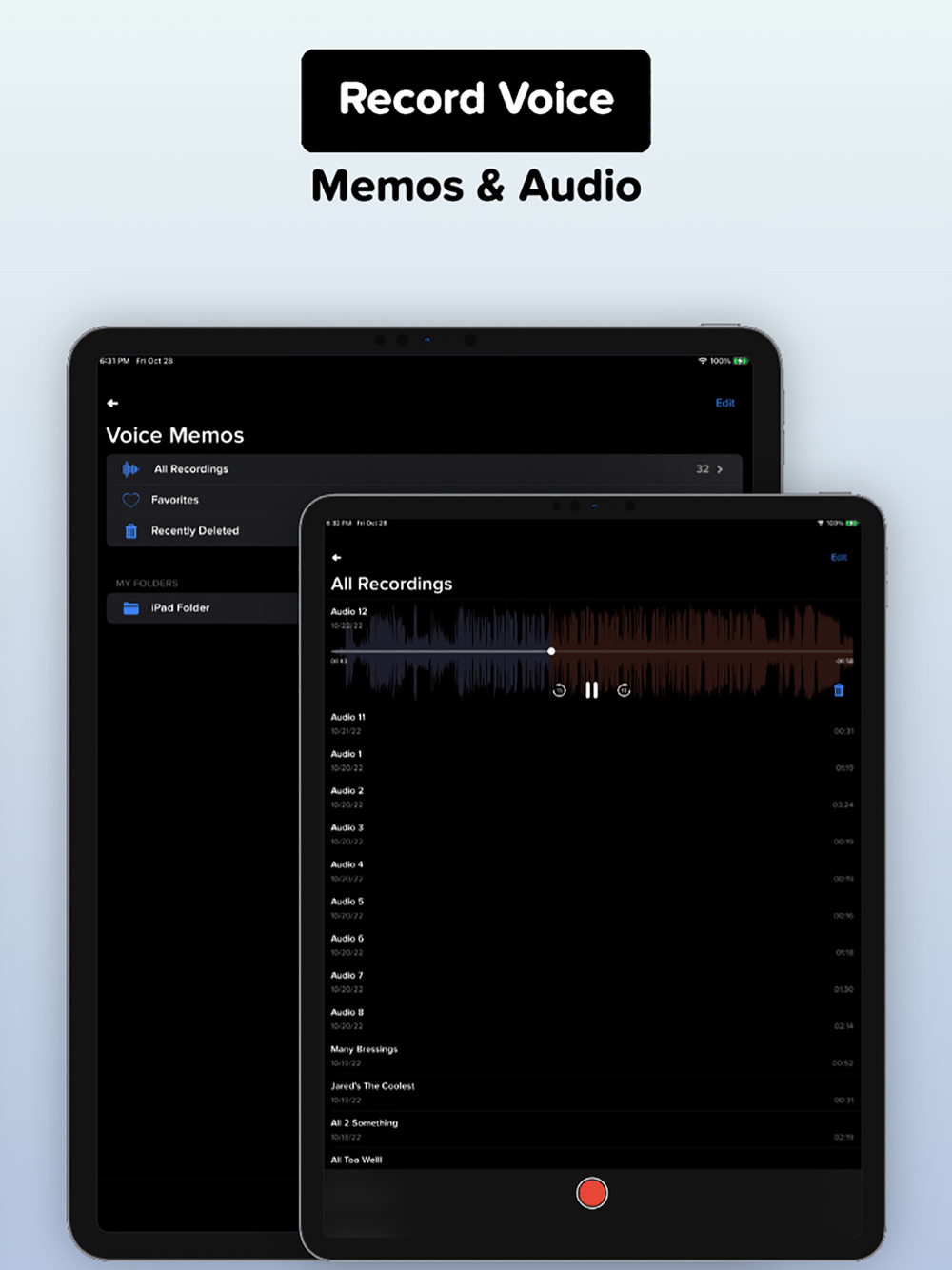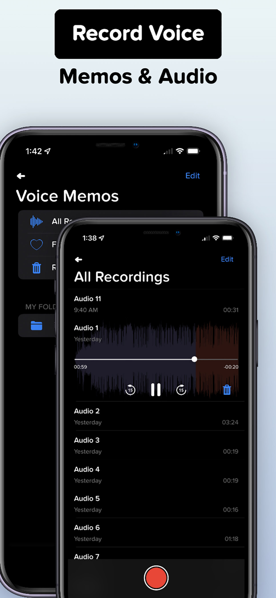 • Record high-quality audio memos