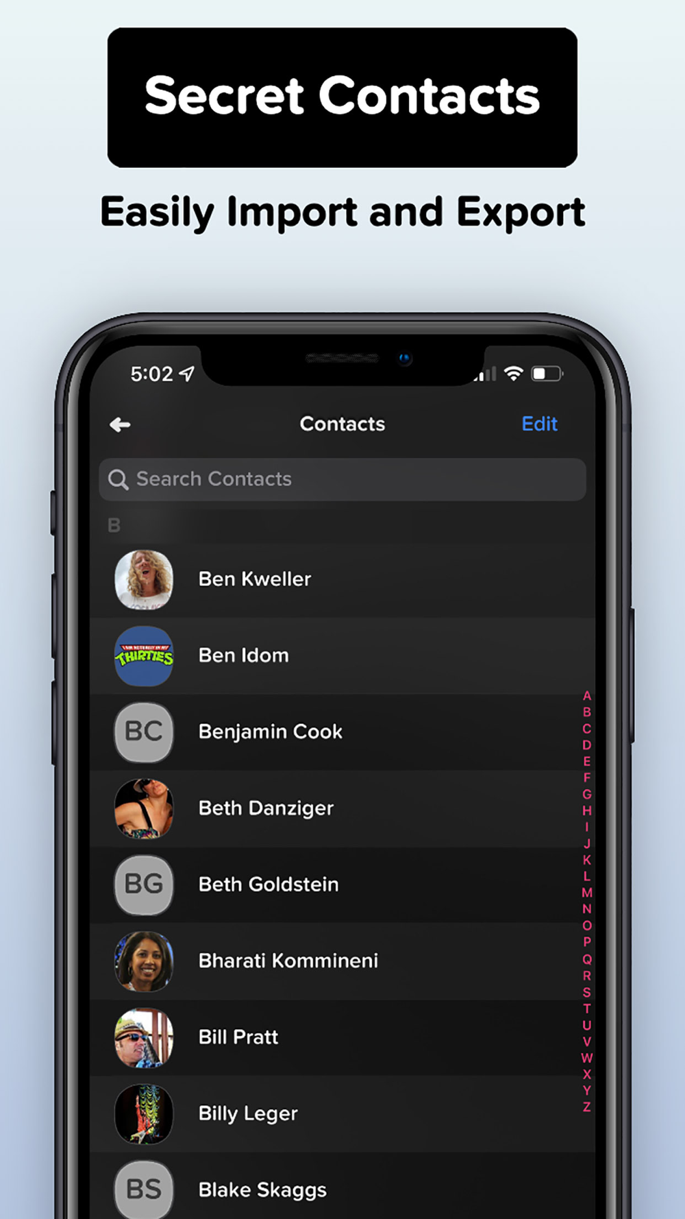 • Store your private contact information