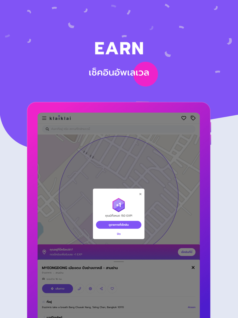 KlaiKlai - Social Map คอมมูนิตี้โซเชียลที่จะช่วยให้ทุกคนค้นหาร้านค้า ร้านอาหาร คาเฟ่ หรือ สถานที่ท่องเที่ยว ในพิกัดที่อยู่ "ใกล้ใกล้" พร้อมรีวิวสะสม exp เพื่อรับสิทธิพิเศษจากพันธมิตรมากมาย