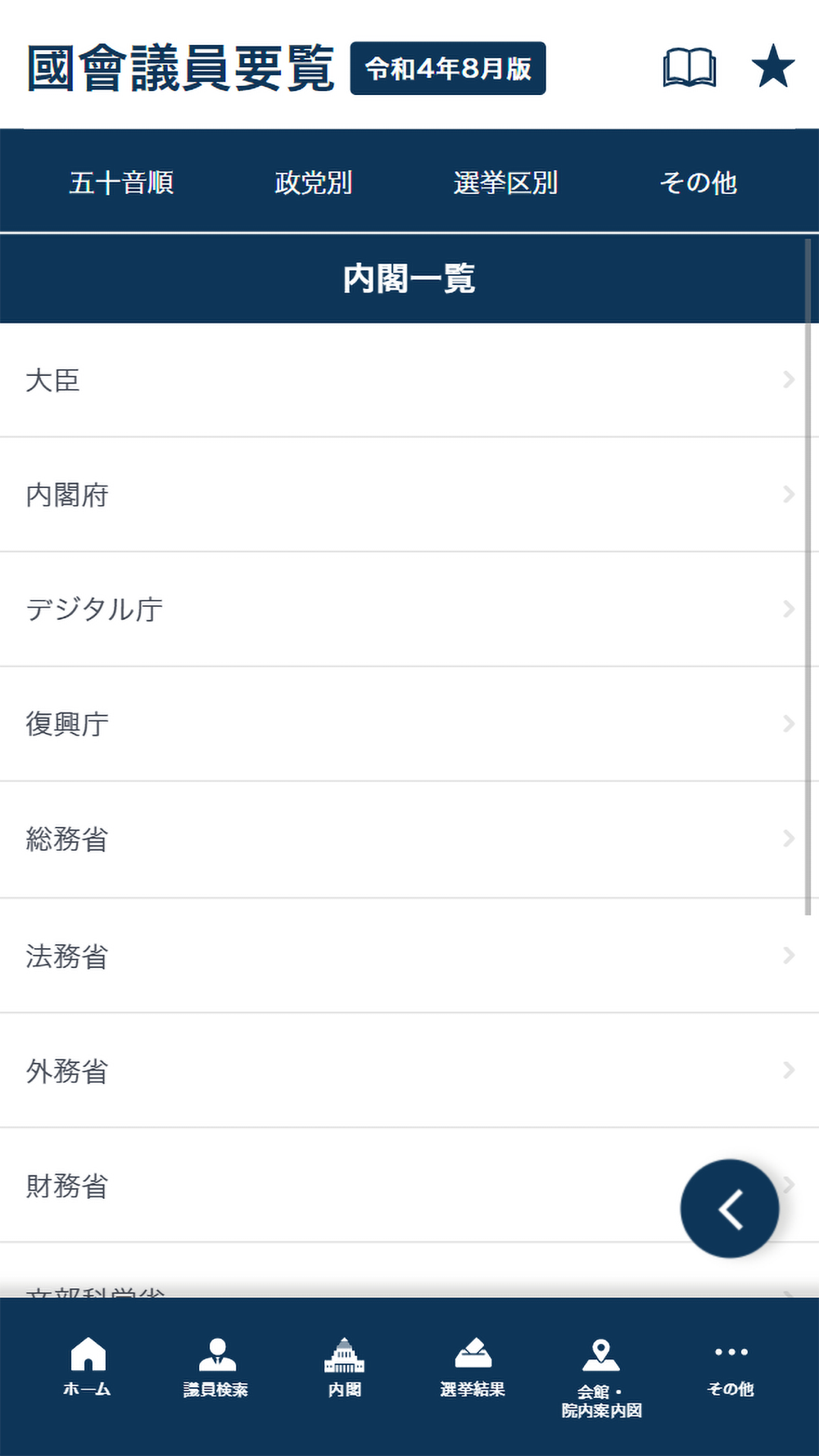 「国会議員要覧 令和4年8月版(発行・国政情報センター)」の電子書籍アプリです。